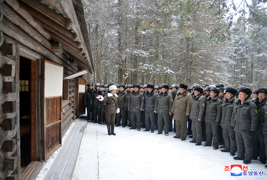 V tábořištích Čchongbong a Končchang si prohlédli místo, kde hrdinka protijaponské války soudružka Kim Čong Suk vařila rýži, stromy nesoucí hesla a další.