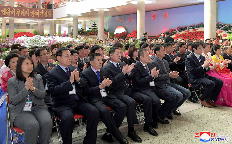 Slavnosti se zúčastnil soudruh Jang Hjong Sop, místopředseda prezídia Nejvyššího lidového shromáždění; soudruh Pak Tche Song, místopředseda ÚV Korejské strany práce; soudruh Čon Kwang Ho, místopředseda vlády; funkcionáři organizačního výboru festivalu, ministerstev, ústředních institucí a orgánů ozbrojených sil, pracující lid, mládež a školáci, sloužící mužstvo, členové sdružení pro šíření nesmrtelných květin a zahraniční krajané.