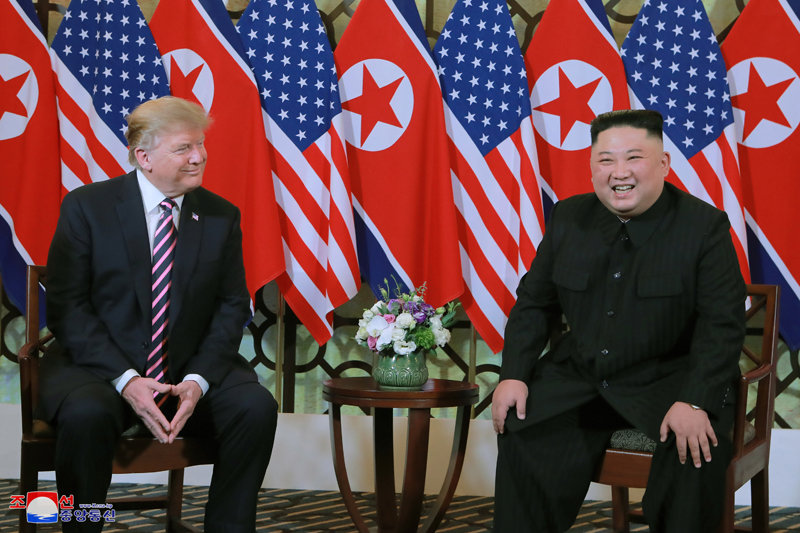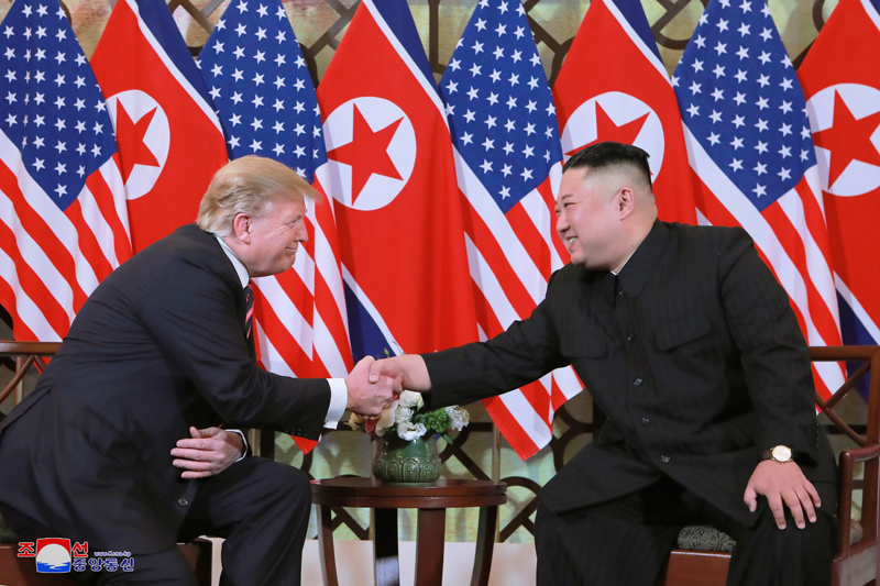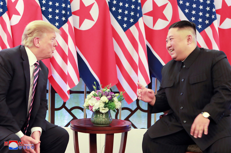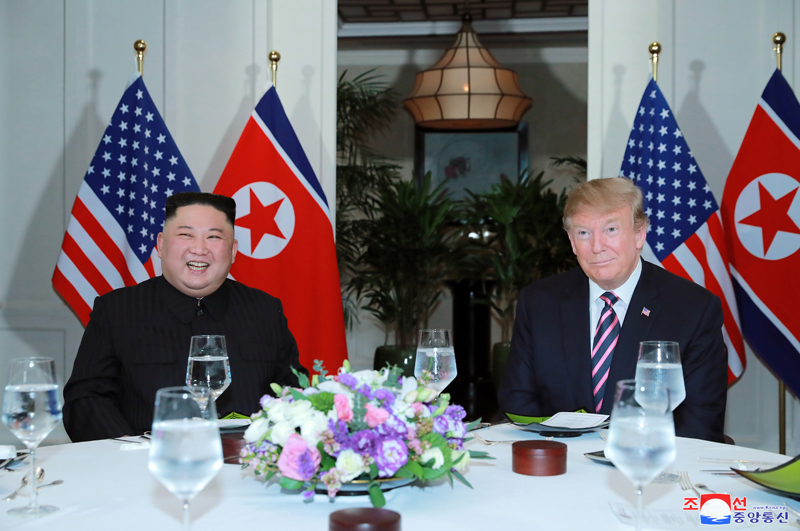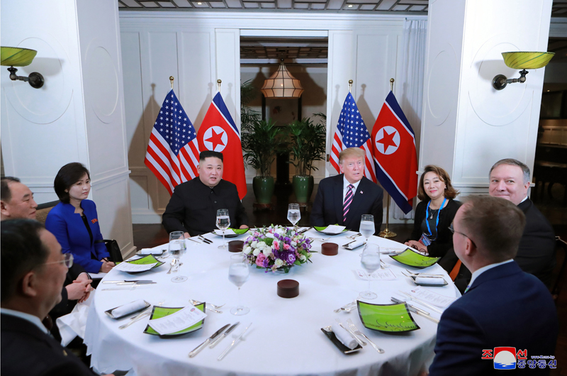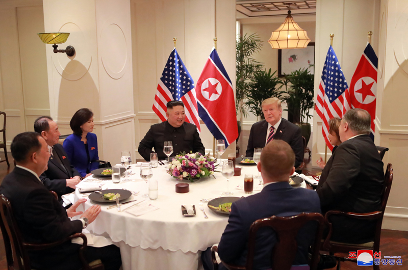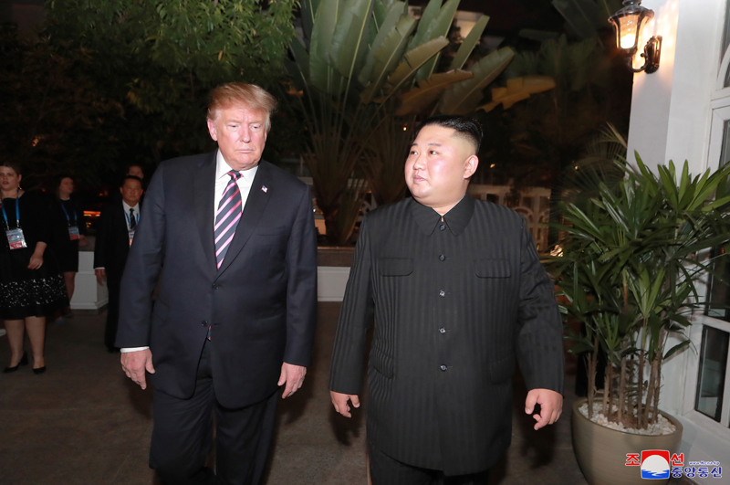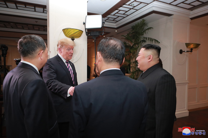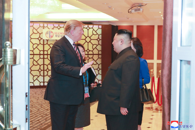 Pchjongjang, 28. února čučche 108 (2019) (KCNA) – Předseda Korejské strany práce a předseda Komise pro státní záležitosti Korejské lidově demokratické republiky, nejvyšší vůdce naší strany, státu a armády soudruh Kim Čong Un se setkal s prezidentem Spojených států amerických Donaldem J. Trumpem a měl s ním rozhovor mezi čtyřma očima a večeři.