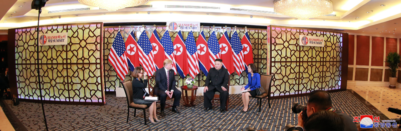 Historický druhý summit a rozhovory obou zemí začaly v Hanoji ve Vietnamu díky vytrvalým přáním, aktivnímu úsilí a mimořádnému odhodlání nejvyšších představitelů KLDR a USA ukončit bludný kruh konfrontace a nepřátelství a reagovat na novou dobu míru a prosperity.