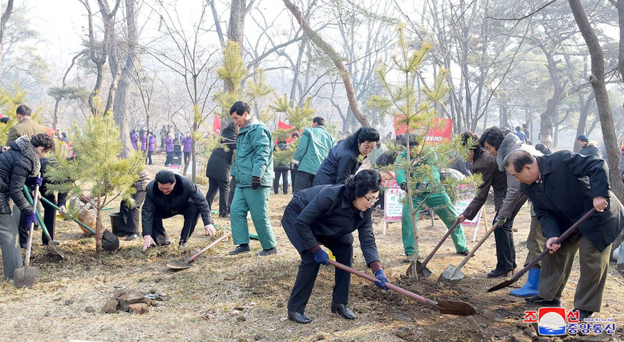 Předseda vlády soudruh Pak Pong Džu, člen prezídia politického byra Ústředního výboru Korejské strany práce a místopředseda Komise pro státní záležitosti KLDR, soudruzi An Čong Su, Pak Tche Song, Ro Tu Čchol, Čche Hwi, Pak Tche Dok a další kádry strany a vlády společně s pracujícími a mládeží a studenty zasadili stromy na různých místech hlavního města včetně sportovní vesnice na ulici Čchongčchun, kopce Munsu, kopce Moran a arboreta Ústřední botanické zahrady.