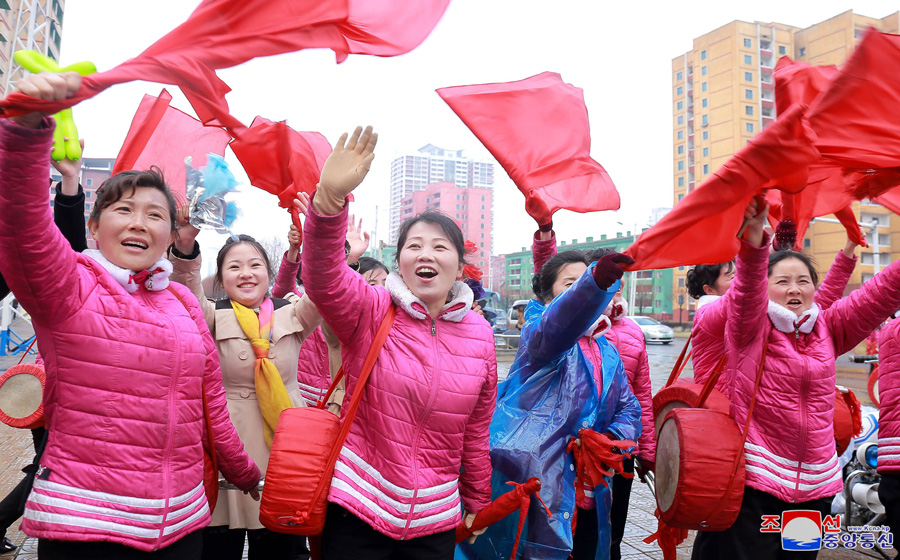 V ulicích Tehak, Tongdewon, Čchongnjon, Sungri, Pipcha, Hasin a dalších částech hlavního města funkcionáři ministerstev a ústředních institucí, pracující továren a podniků a učitelé a studenti vysokých škol srdečně blahopřáli a dodávali bojové povzbuzení velitelům a politrukům rot celé armády.