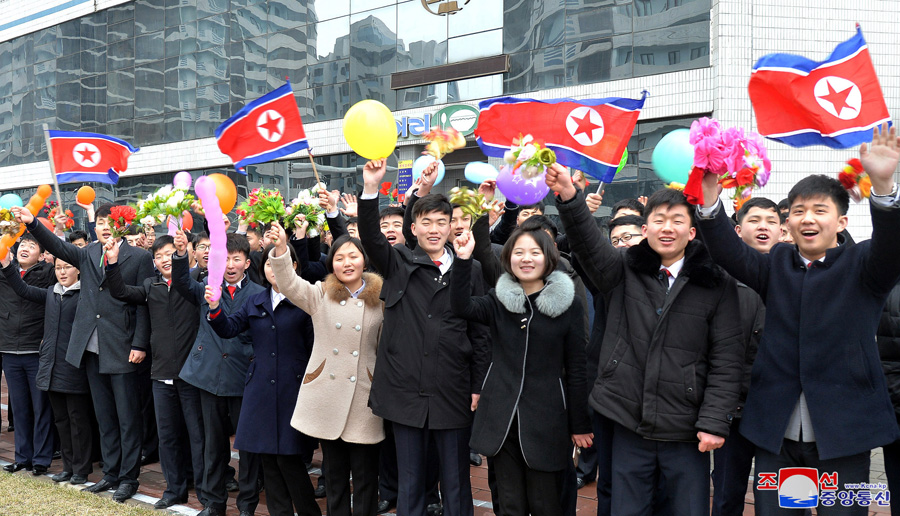 Funkcionáři Ústředního výboru Korejské strany práce a důstojníci orgánů ozbrojených sil je přišli vyprovodit k hotelu „25. dubna“, železniční stanici Pchjongjang atd.