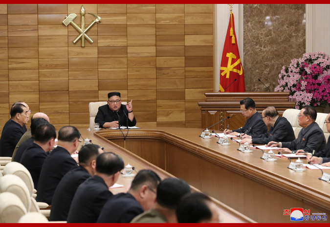 Pchjongjang, 10. apríla čučche 108 (2019) (KCNA) – V utorok popoludní sa v sídle Ústredného výboru Kórejskej strany práce uskutočnilo rozšírené zasadnutie politického byra Ústredného výboru KSP.