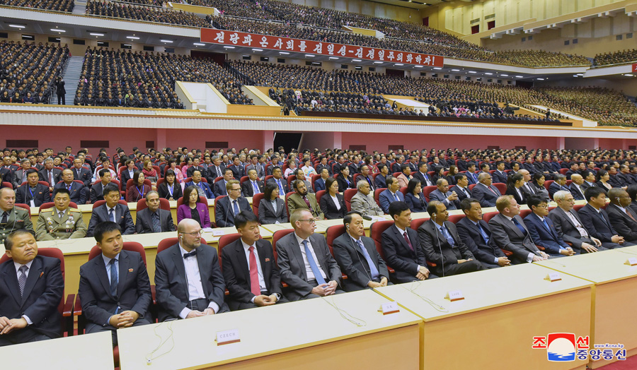 Stretnutia sa zúčastnili aj gratulačné skupiny a delegácie zámorských krajanov a zástupca pchjongjanského oddelenia Národného protiimperialistického demokratického frontu.