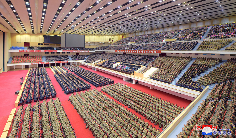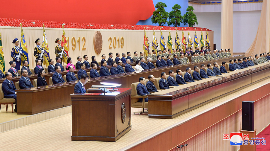 Pchjongjang, 15. apríla čučche 108 (2019) (KCNA) – Na krytom štadióne v Pchjongjangu sa v nedeľu 14. apríla uskutočnilo národné stretnutie na počesť 107. výročia narodenia veľkého vodcu súdruha Kim Ir Sena.