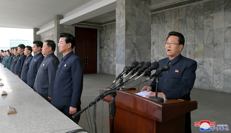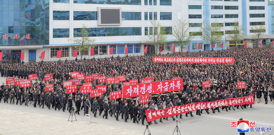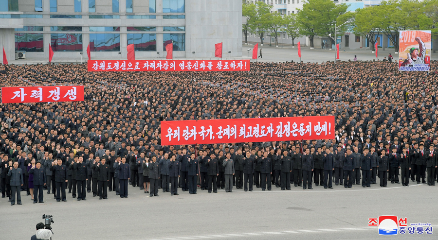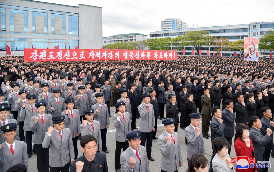 Pchjongjang, 19. apríla čučche 108 (2019) (KCNA) – 18. apríla sa na námestí Hean (Nábrežie) vo Wonsane uskutočnilo prísažné stretnutie provincie Kangwon za vykonanie prudkého vzostupu v bojových oblastiach socialistickej výstavby a pevné uchopenie meča prosperity – ducha sebadôvery.
