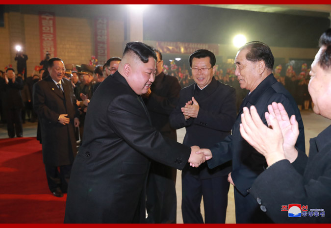 Váženého najvyššieho vodcu súdruha sprevádzali členovia politického byra a podpredsedovia ÚV Kórejskej strany práce súdruhovia Kim Pchjong He a O Su Jong; člen politického byra ÚV KSP a minister zahraničných vecí súdruh Ri Jong Ho; náhradník politického byra ÚV KSP a náčelník Generálneho štábu Kórejskej ľudovej armády, armádny generál súdruh Ri Jong Gil; členka Komisie pre štátne záležitosti KĽDR a prvá viceministerka zahraničia súdružka Čche Son Hui; a ďalší členovia ÚV KSP a Komisie pre štátne záležitosti KĽDR.