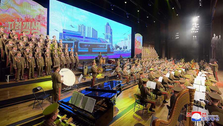 Účinkující zaníceně oslavili nesmrtelné zásluhy neskonalých velikánů, kteří založili revoluční armádu, a tak se stali průkopníky revoluční věci čučche, kráčející vpřed silou zbraní, a zahájili rozkvět budování revolučních ozbrojených sil.
