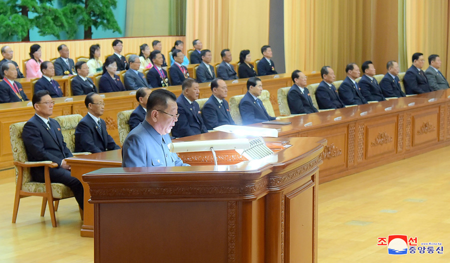 Řečník naléhal na to, aby každý pod moudrým vedením soudruha Kim Čong Una s vysoce vztyčeným praporem soběstačnosti vedl celostátní velkou ofenzívu a generální boj na život a na smrt v podpoře socialistické výstavby.