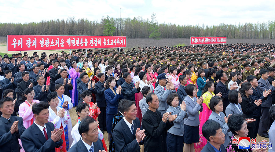 Přítomen byl soudruh Čche Hwi, člen politického byra a místopředseda Ústředního výboru Korejské strany práce; soudruh Čon Kwang Ho, místopředseda vlády; soudruh Ro Kwang Sop, ředitel Ústavu dějin strany Ústředního výboru KSP; soudruh Ri Sang Won, předseda Rjanggangského provinčního výboru strany; soudruh Ri Song Guk, předseda Rjanggangského provinčního lidového výboru, funkcionáři organizací pracujícího lidu a funkcionáři a pracující lid provincie Rjanggang.