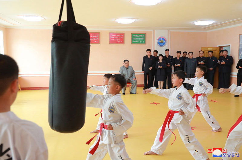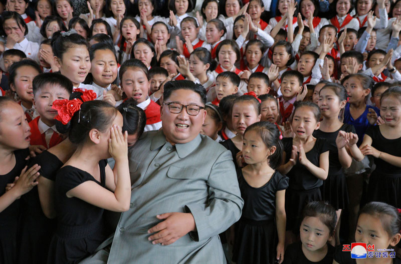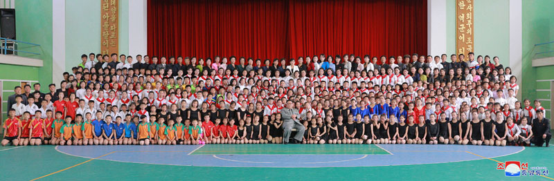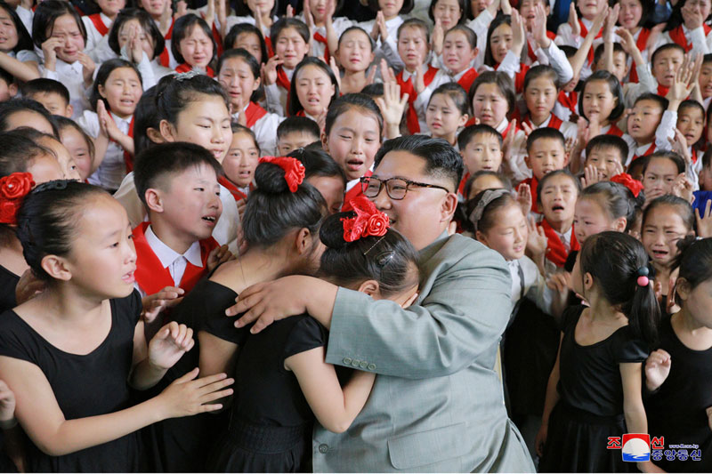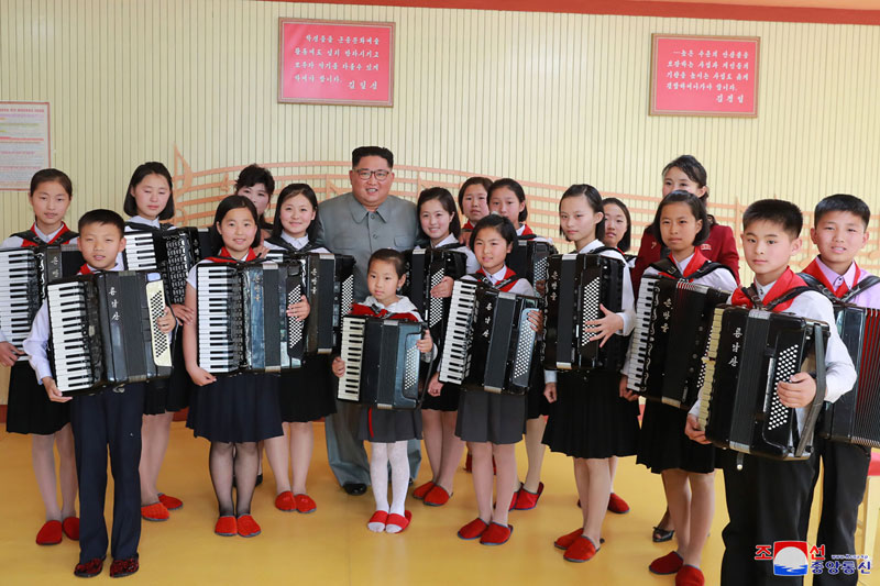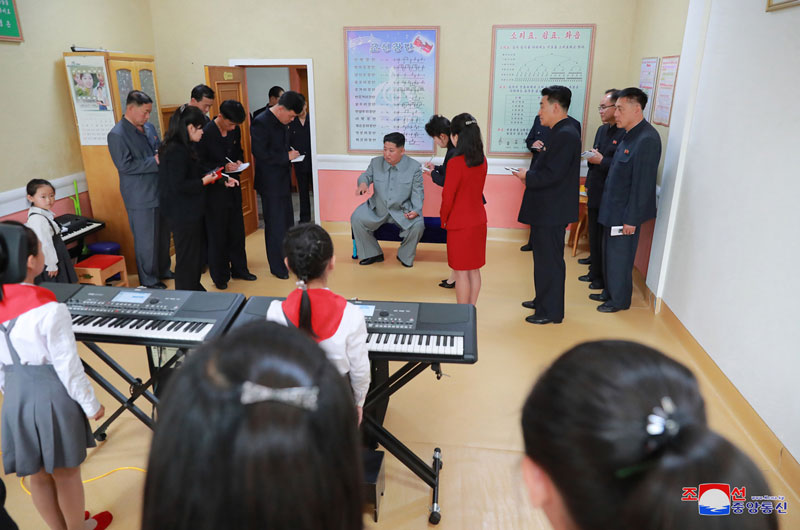 Vážený soudruh nejvyšší vůdce se podíval na aktivity dětí ze zájmových kroužků paláce, které plny snů vyrůst ve spolehlivé kádry budoucnosti vlasti rozvíjejí své tvůrčí nadání, popřál jim šťastnou budoucnost a nechal se s nimi na paměť vyfotografovat.
