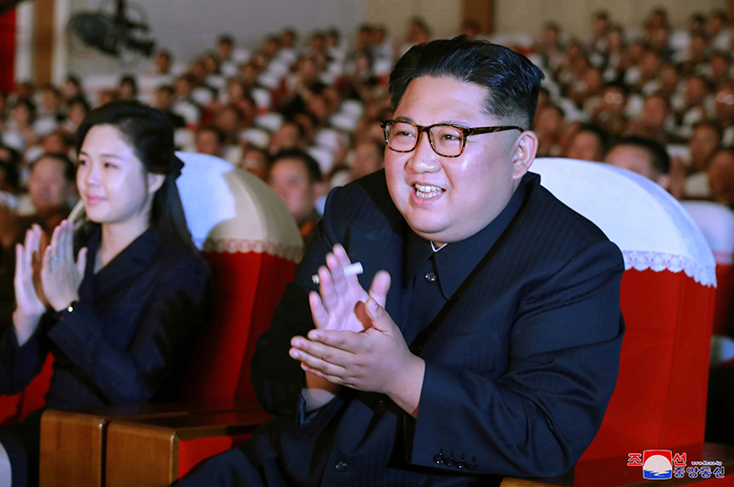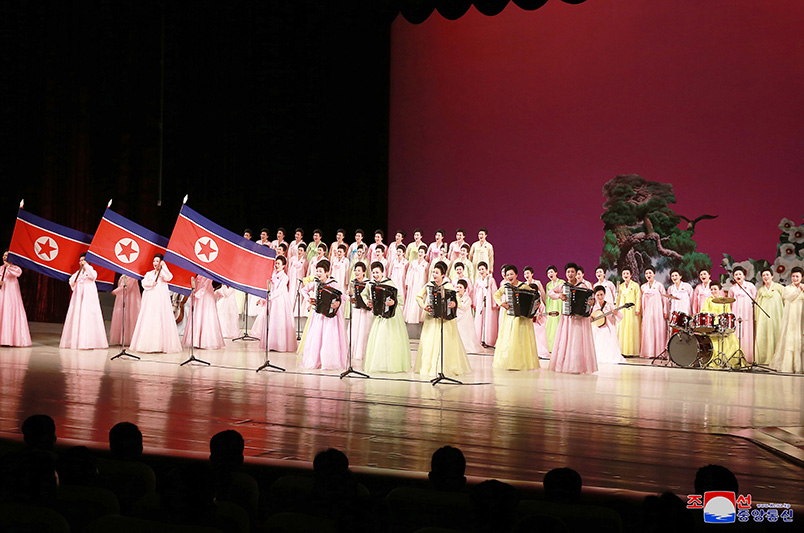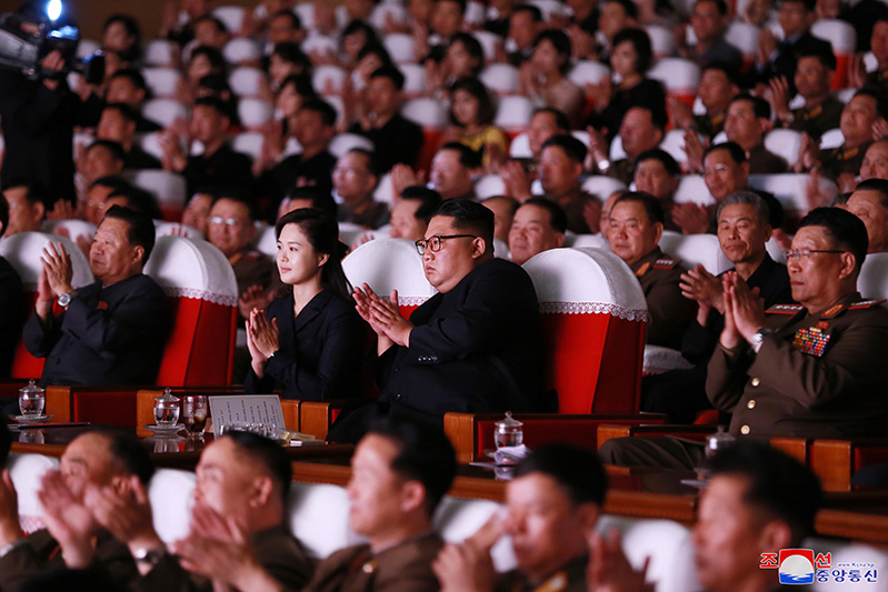 Když vážený nejvyšší vůdce soudruh Kim Čong Un společně se soudružkou Ri Sol Džu vešli do divadelního sálu, účastníci propukli v bouřlivé skandování „Hurá!“
