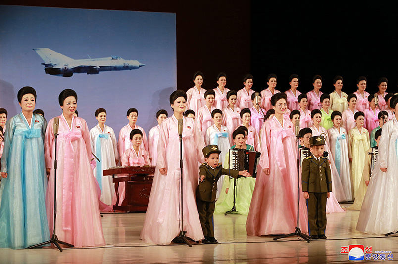 V představení vystoupily členky amatérských uměleckých skupin manželek důstojníků 4. sboru, leteckých a protiletadlových sil KLA. Představily různá čísla včetně sólového zpěvu a pangčchangu (píseň mimo jeviště, pozn. překl.)  „Toužení“, sboru „Náš vůdce, kterého lid miluje“, harmonikové skupiny a sboru „Naše národní vlajka“,  sboru „Horoucí přání“, instrumentálního tria „Krásná stopa letadla“ a písně doprovázené rozsáhlou národní instrumentální hudbou „Náš socialismus je nejlepší na světě“, která dojemně ukázala ideologickou a duchovní charakteristiku manželek důstojníků, které oslavují každou minutu svého života horoucí touhou po vůdci a věrností.