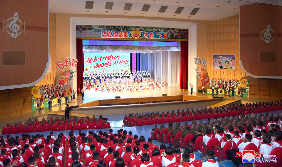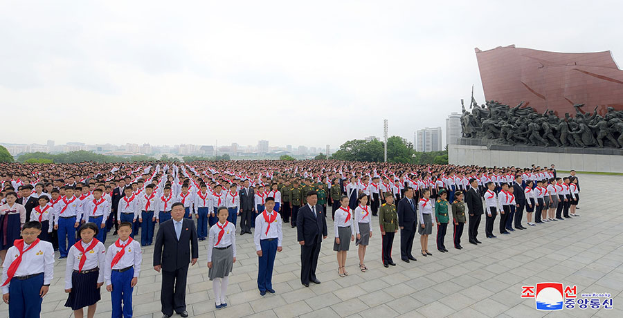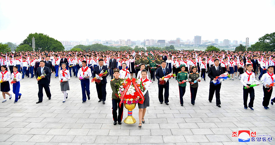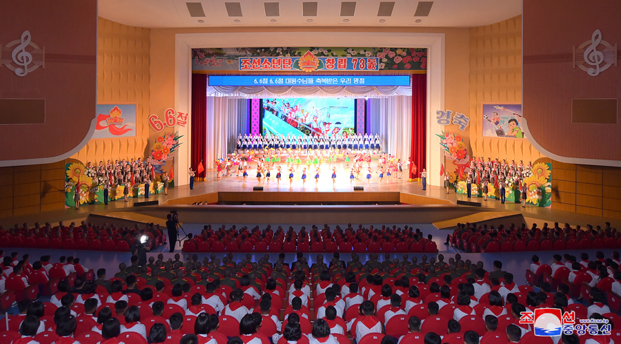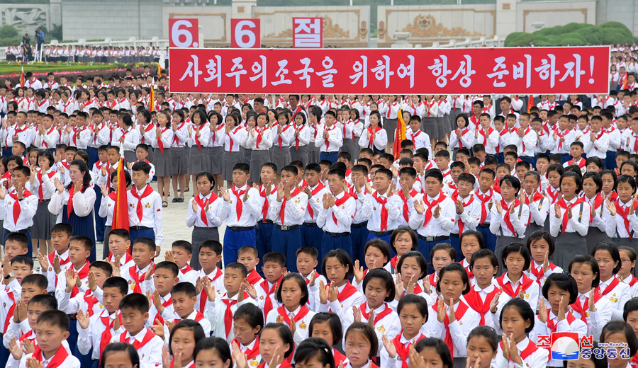 Pchjongjang, 6. června čučche 108 (2019) (KCNA) – Na nádvoří Paláce slunce Kumsusan se 6. června konalo společné národní setkání organizací Korejského svazu dětí (KSD) na počest 73. výročí založení KSD.