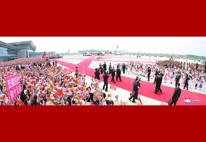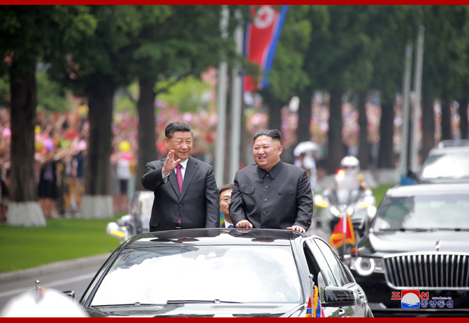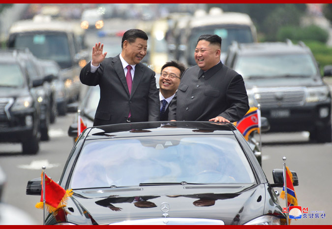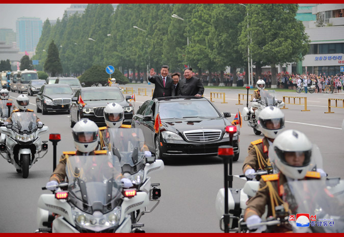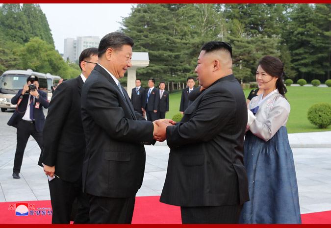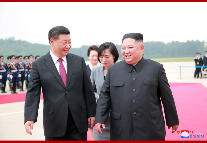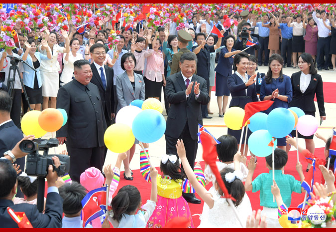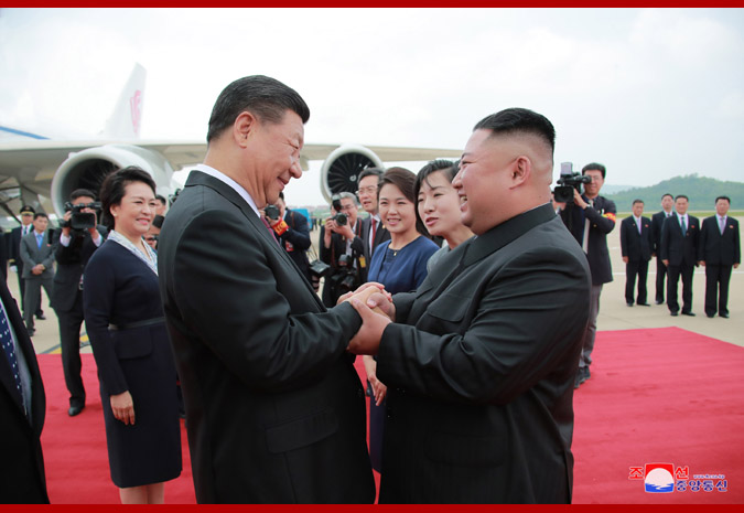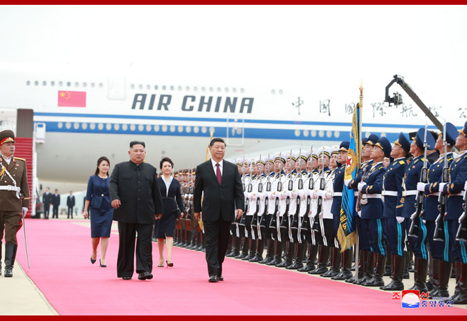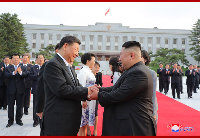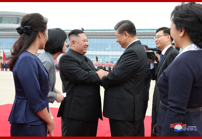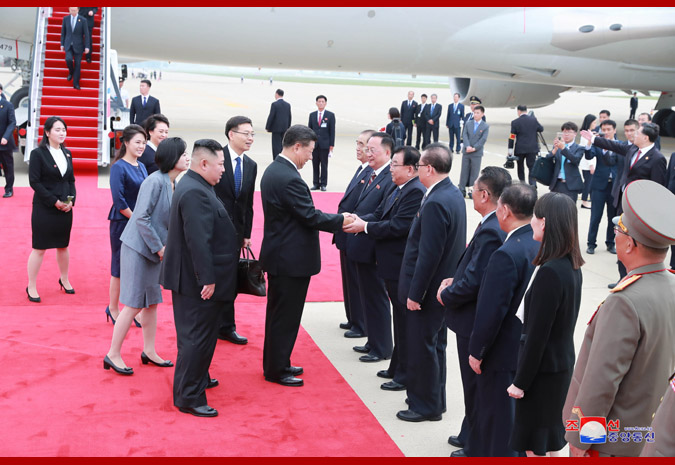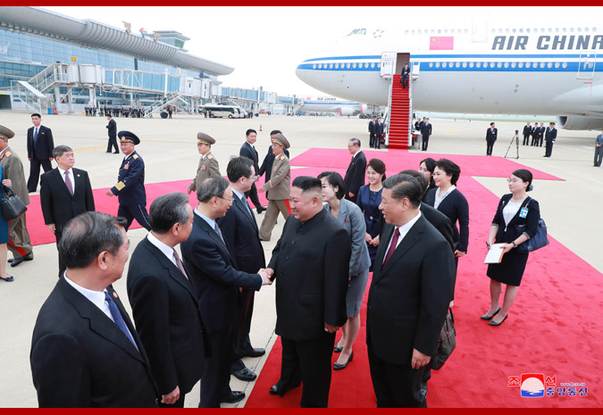 Pchjongjang, 21. júna čučche 108 (2019) (KCNA) – Na pozvanie váženého najvyššieho vodcu súdruha Kim Čong Una, predsedu Kórejskej strany práce a predsedu Komisie pre štátne záležitosti Kórejskej ľudovodemokratickej republiky, priletel vo štvrtok 20. júna 2019 do Pchjongjangu špeciálnym lietadlom generálny tajomník Ústredného výboru Komunistickej strany Číny a prezident Čínskej ľudovej republiky súdruh Si Ťin-pching, aby uskutočnil štátnu návštevu KĽDR.