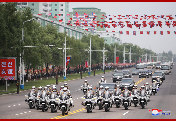 Nadšené davy ľudí v celom Pchjongjangu odrážajú hlboké a priateľské pocity strany a ľudu KĽDR voči čínskej strane a ľudu a sú silnou ukážkou veľkého priateľstva KĽDR a Číny, povedal v príhovore najvyšší vodca.