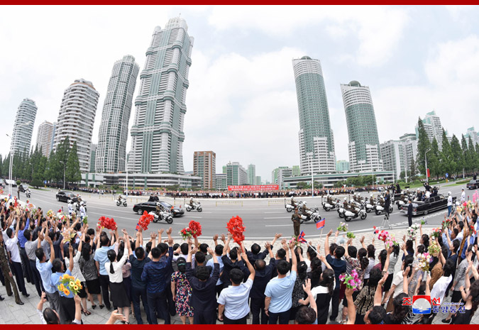 Automobil, v ktorom sa viezol súdruh Si Ťin-pching, zamieril do Rezidencie pre čestných hostí Kumsusan, sprevádzané motocyklami. Občania Pchjongjangu vrele vítali súdruha Si Ťin-pchinga v uliciach mesta, vrátane obvodu Sunan, Rjonmot-dong, križovatky Rjonghung a námestia pred Domom kultúry 25. apríla.