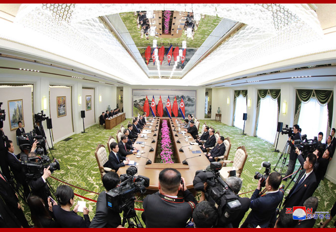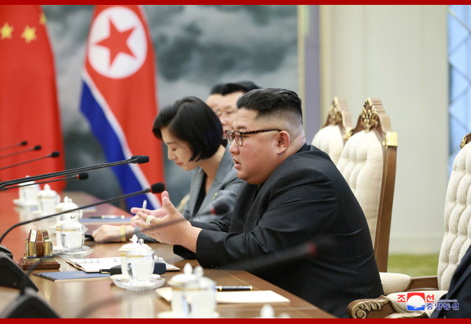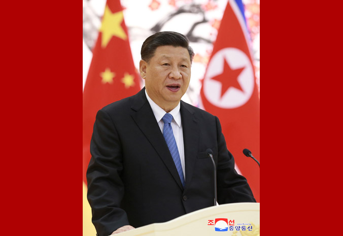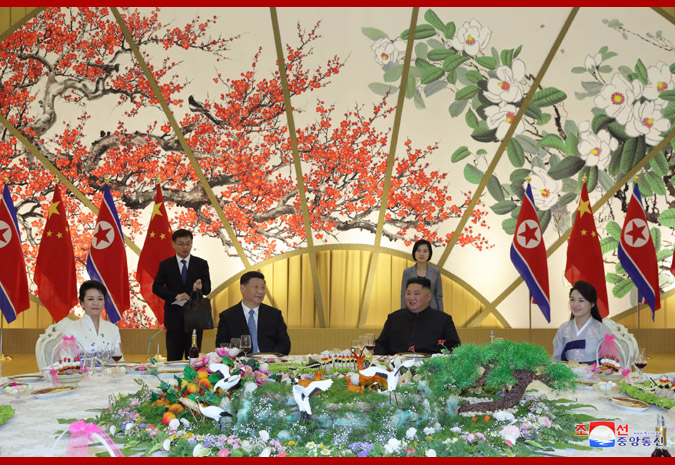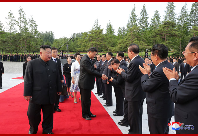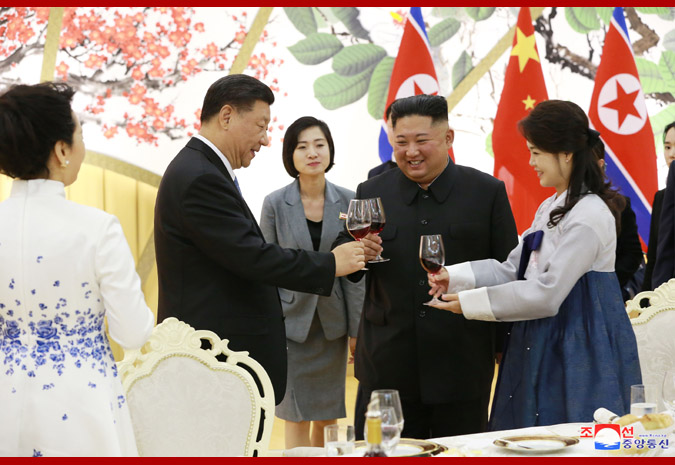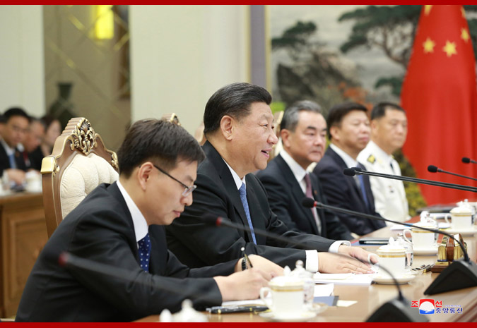 Srdečne vítajúc návštevu súdruha Si Ťin-pchinga v KĽDR v tomto roku, v ktorom si pripomíname 70. výročie nadviazania diplomatických vzťahov medzi KĽDR a Čínou, súdruh Kim Čong Un vysoko ocenil, že jeho návšteva je rozhodujúcou príležitosťou na preukázanie nemennosti a neporaziteľnosti priateľstva medzi Čínou a KĽDR pred svetom a má veľký význam v ďalšej konsolidácii priateľských vzťahov medzi oboma krajinami, ktoré vstúpili do novej éry rozkvetu.