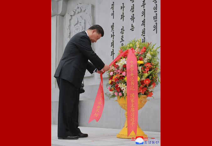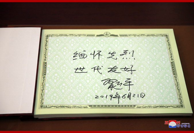 Pchjongjang, 21. júna čučche 108 (2019) (KCNA) – Štátna návšteva generálneho tajomníka ÚV Komunistickej strany Číny a prezidenta Čínskej ľudovej republiky súdruha Si Ťin-pchinga pokračovala v piatok 21. júna druhým dňom návštevy, v rámci ktorého prezident Si Ťin-pching položil kvetinový kôš k Veži priateľstva a bol usporiadaný slávnostný obed oboch najvyšších predstaviteľov.