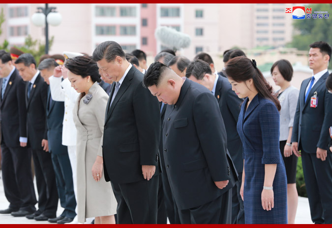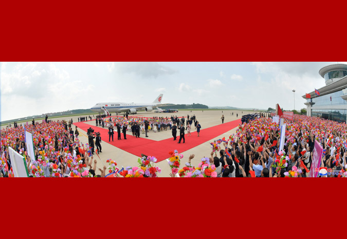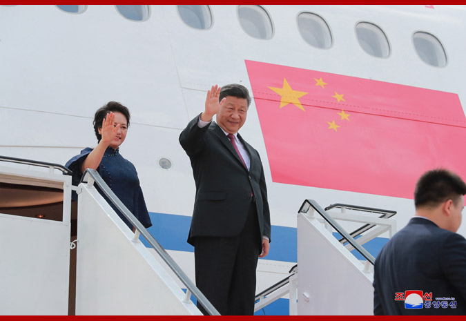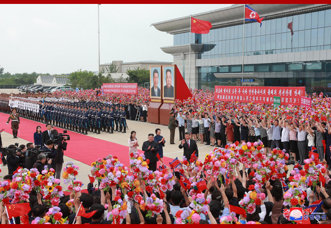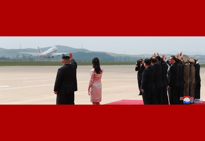Najvyšší vodca strany, štátu a ozbrojených síl súdruh Kim Čong Un spolu so svojou ženou Ri Sol Džu odprevadili prezidenta Si Ťin-pchinga a jeho manželku Peng Liyuan na medzinárodné letisko Pchjongjang.