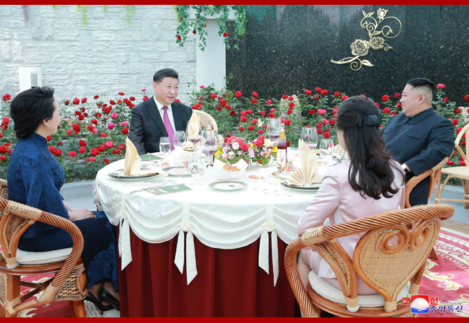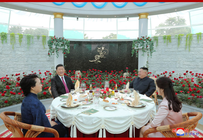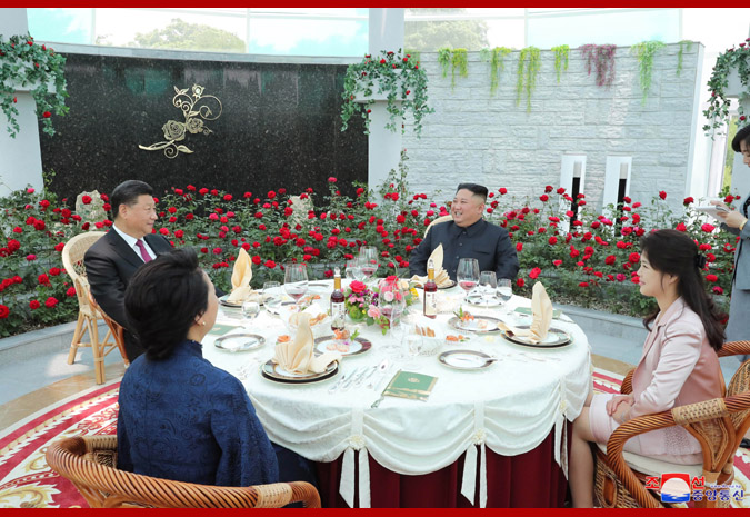 Neskôr vážený najvyšší vodca súdruh Kim Čong Un so svojou manželkou navštívil rezidenciu pre čestných hostí, kde bol ubytovaný čínsky prezident Si Ťi-pching s manželkou, a usporiadal pre nich slávnostný obed.