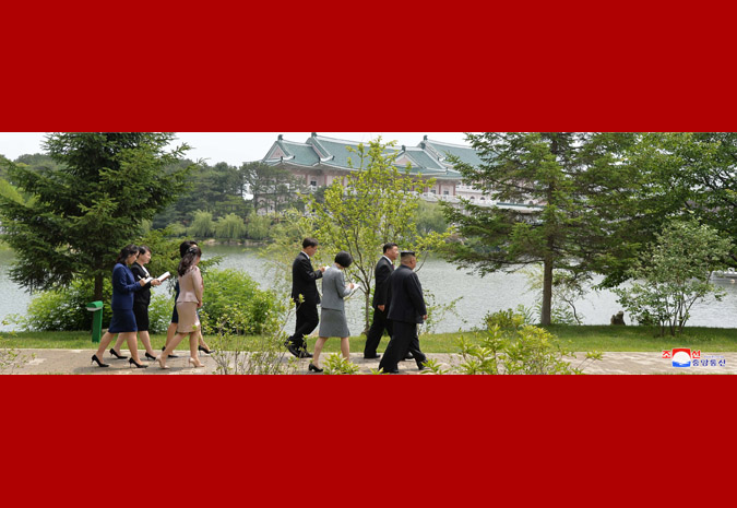 Potom vážený najvyšší vodca strany, štátu a ozbrojených síl KĽDR súdruh Kim Čong Un a jeho manželka Ri Sol Džu priviedli súdruha Si Ťin-pchinga a jeho manželku Peng Liyuan na špeciálne obedné miesto v rozáriu Rezidencie pre čestné návštevy Kumsusan a obedovali spolu v srdečnej atmosfére ako členovia rodiny.
