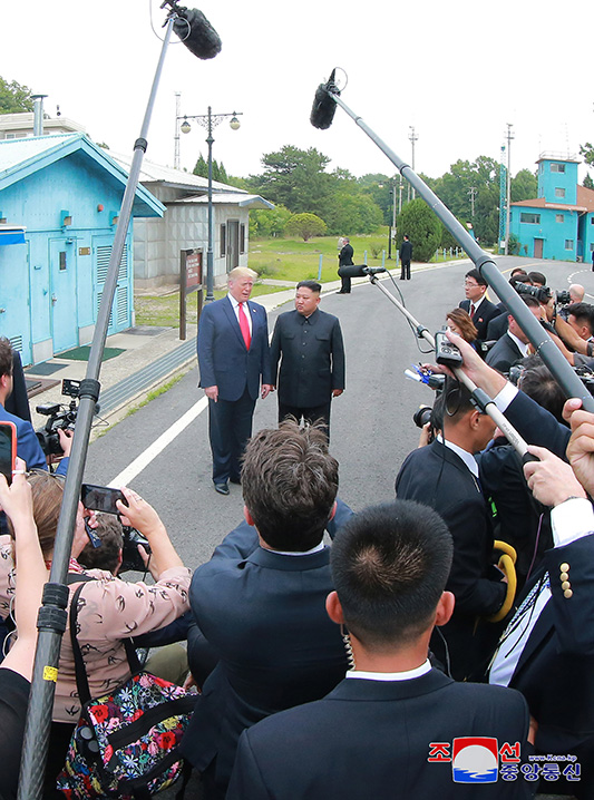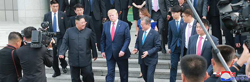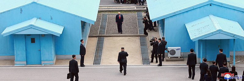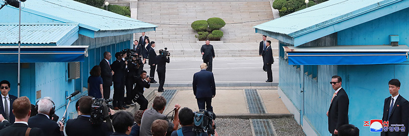 Vážený soudruh nejvyšší vůdce a prezident Trump přistoupili před Pavilon Pchanmundžom v oblasti naší strany Pchanmundžomu a znovu si potřásli rukama. Nastal historický okamžik, kdy působící prezident USA poprvé v dějinách překročil vojenskou demarkační linii a vstoupil na naše území.
