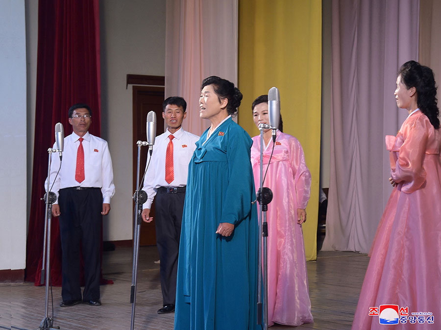 Stretnutie sa začalo zborom „Túžime po Vašom slnečnom úsmeve“. Vystupujúci umelci dojemne spievali o revolučných zásluhách súdruha Kim Ir Sena, ktorý svojou nekonečnou oddanosťou a neúnavným úsilím prinášal šťastie a bohatý život ľudu pri dlhých cestách, na ktorých poskytoval terénne pokyny poľnohospodárskym podnikom po celej krajine.