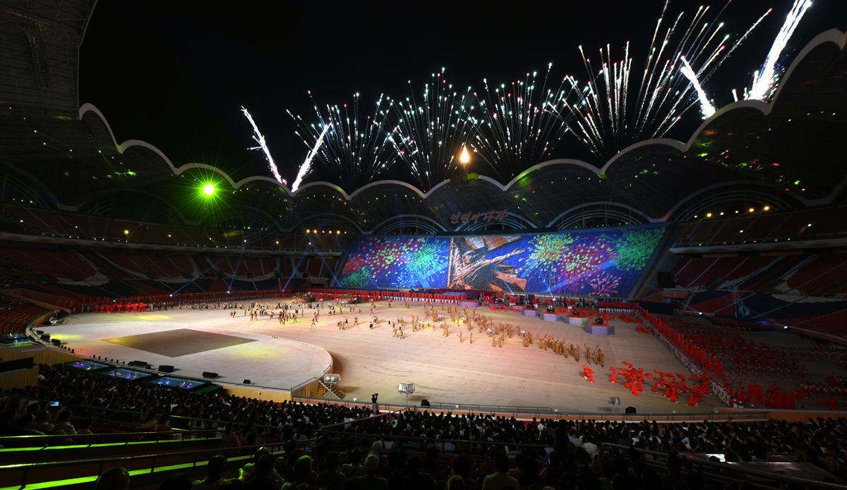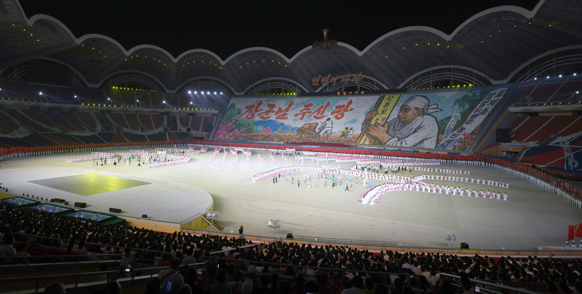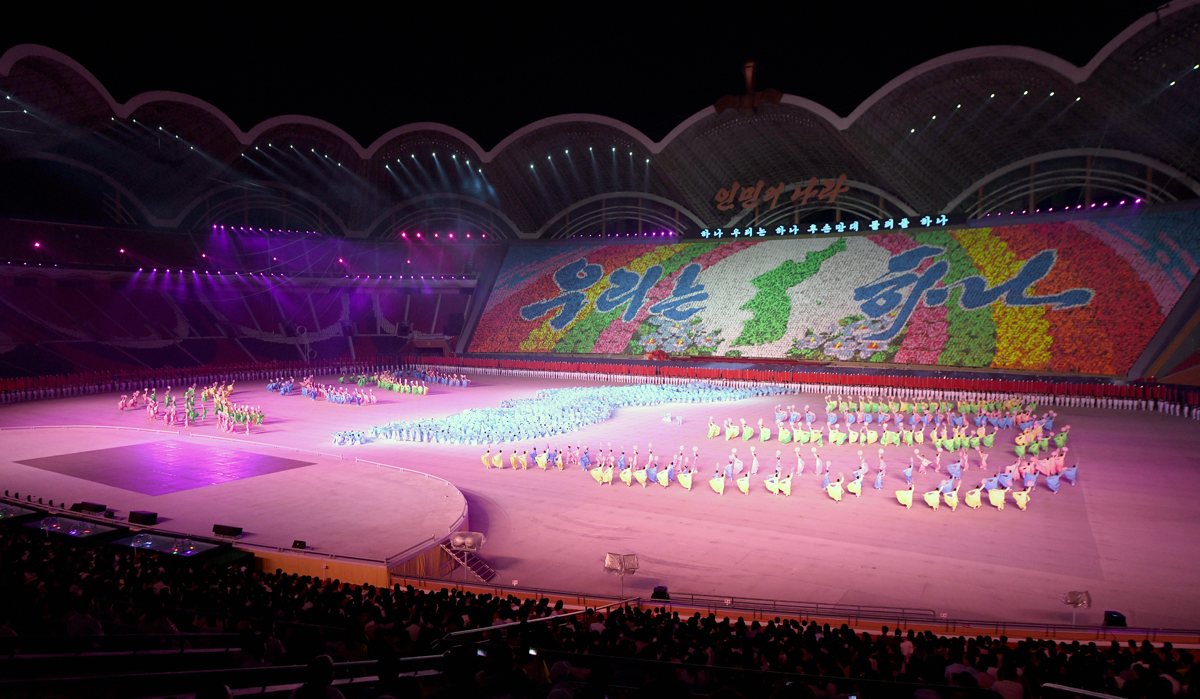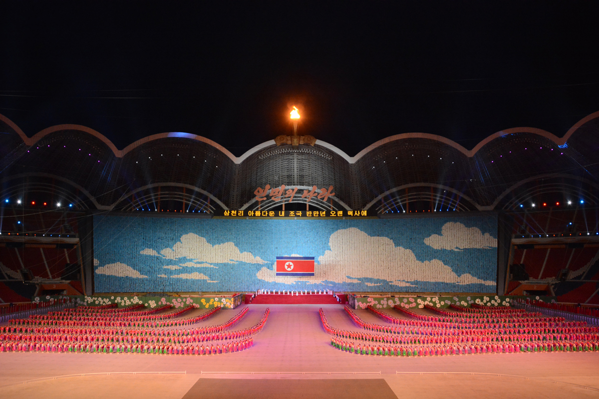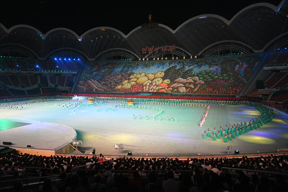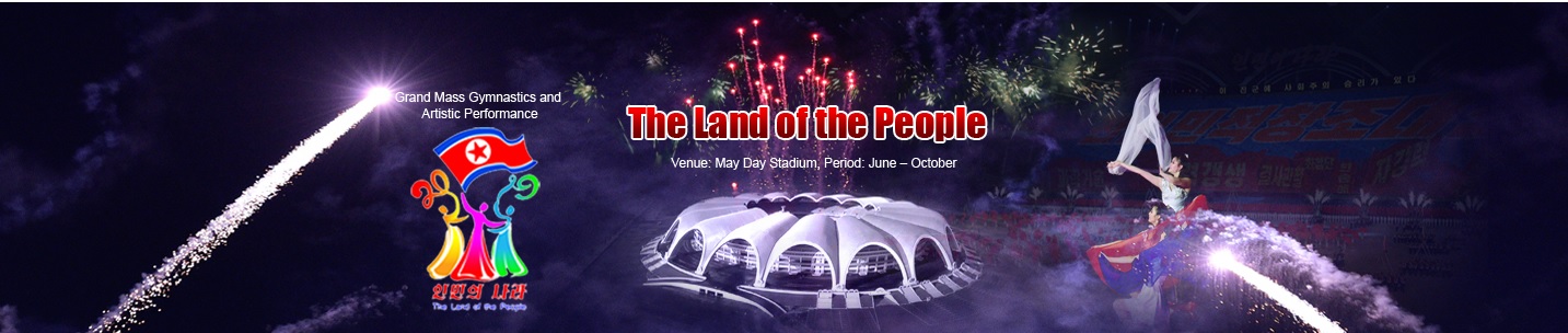 Velké masové tělocvičné a umělecké představení „Země lidu“ se koná na Stadionu 1. máje na malebném ostrově Rungna v Pchjongjangu v období od června do října.