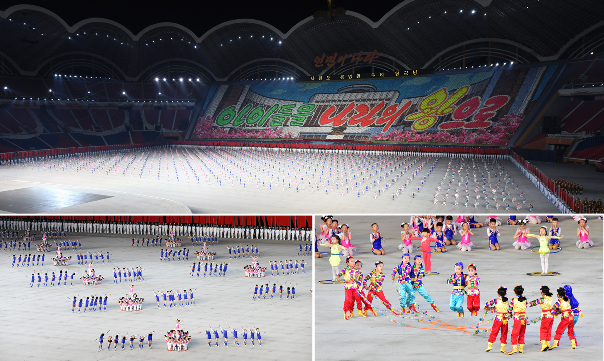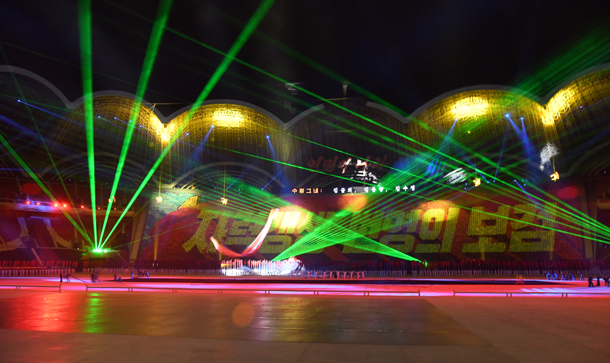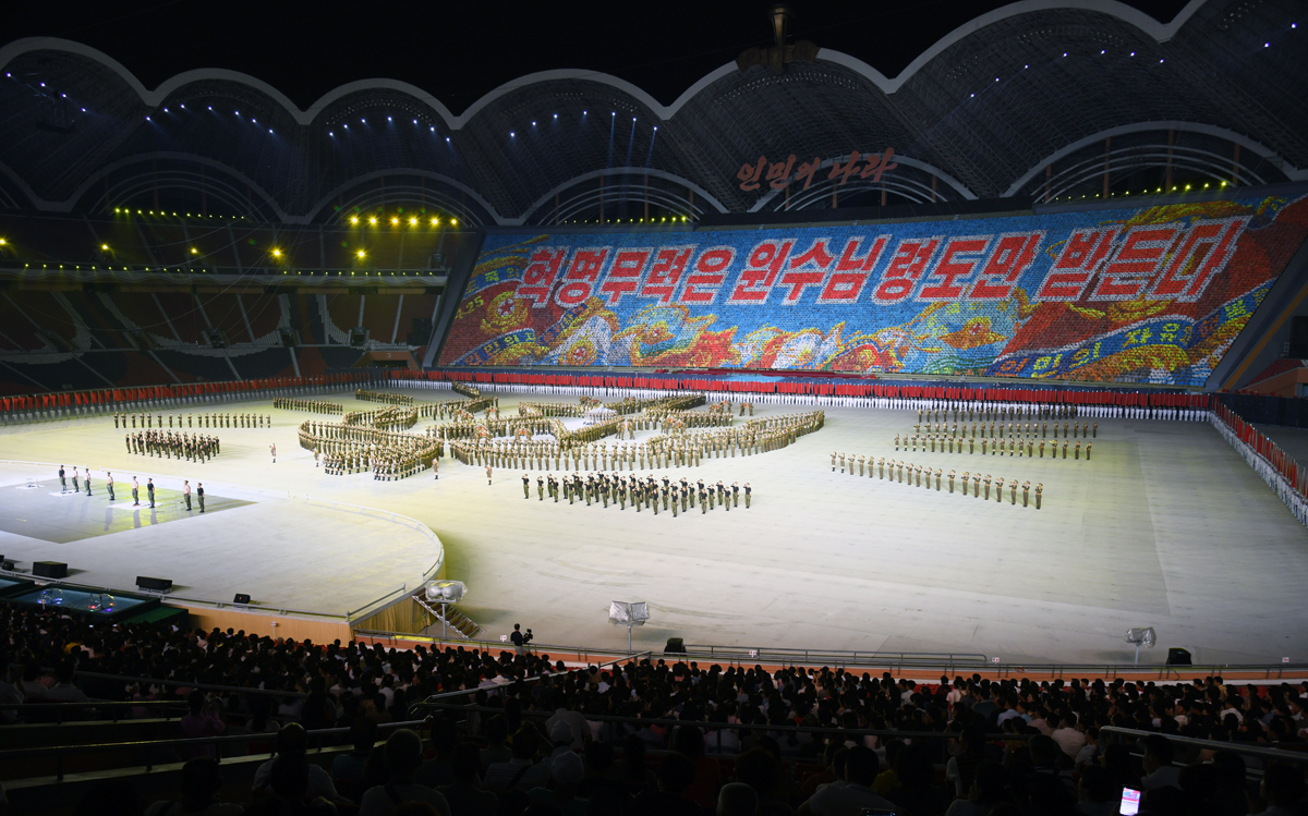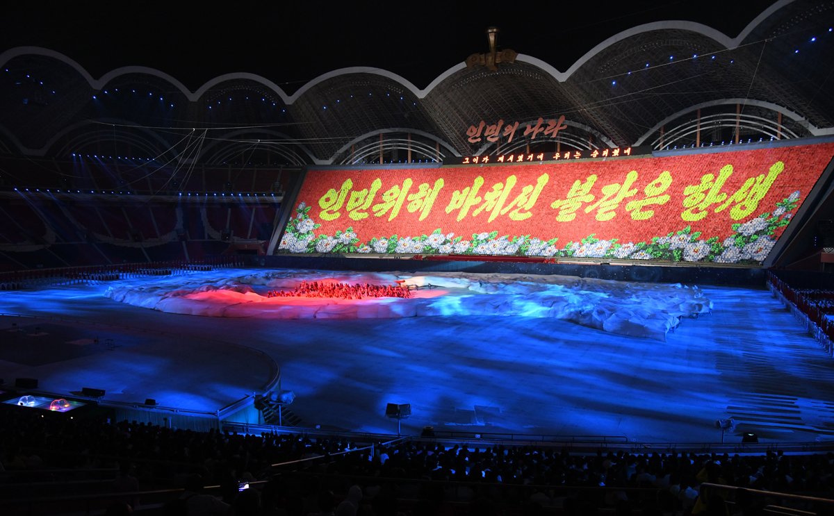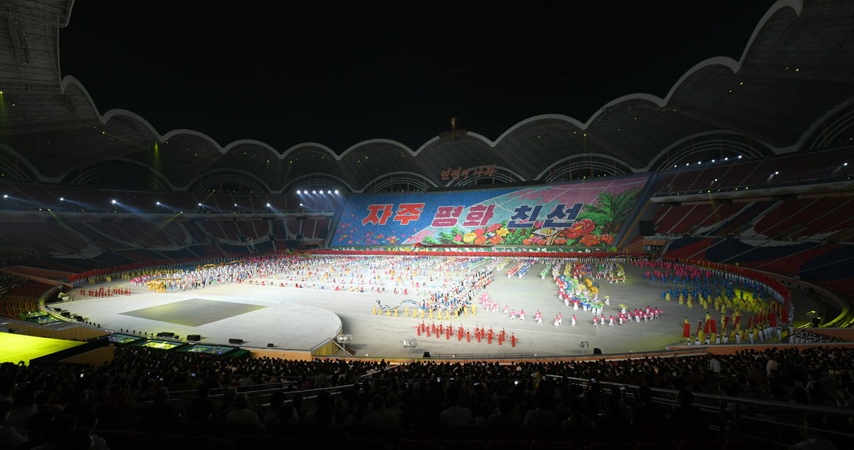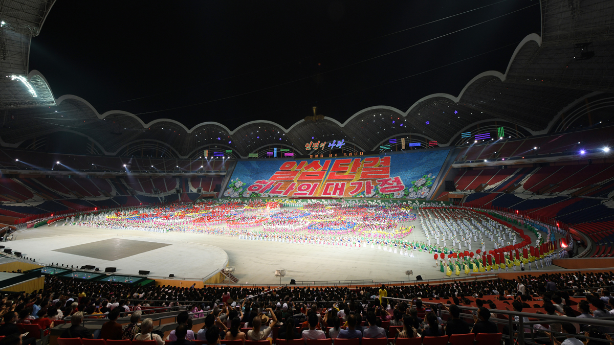 Velké masové tělocvičné a umělecké představení „Země lidu“ se koná na Stadionu 1. máje na malebném ostrově Rungna v Pchjongjangu v období od června do října.