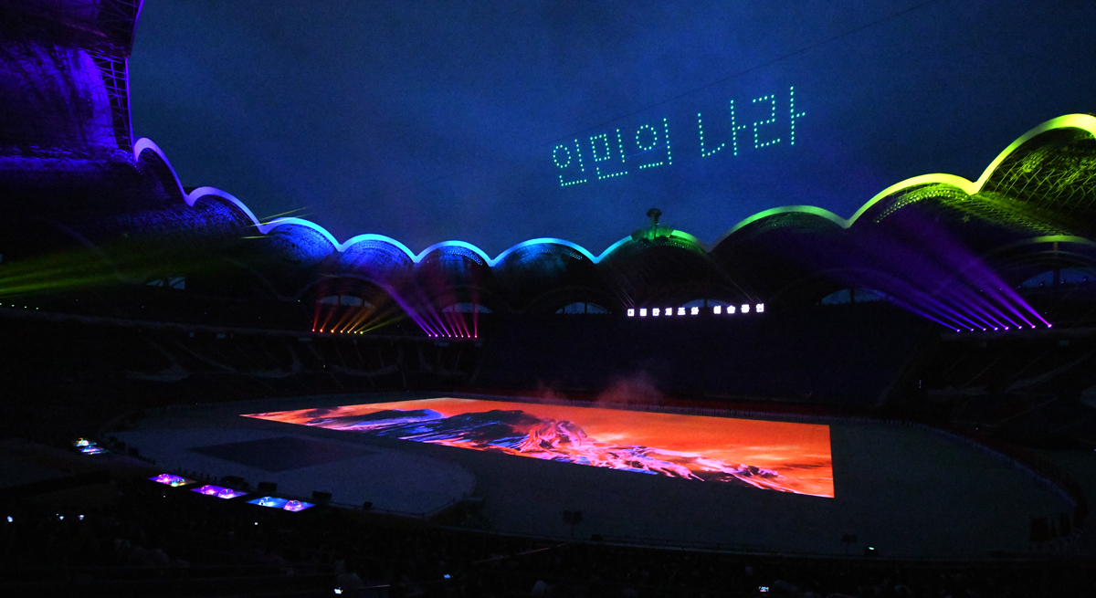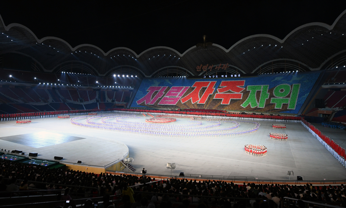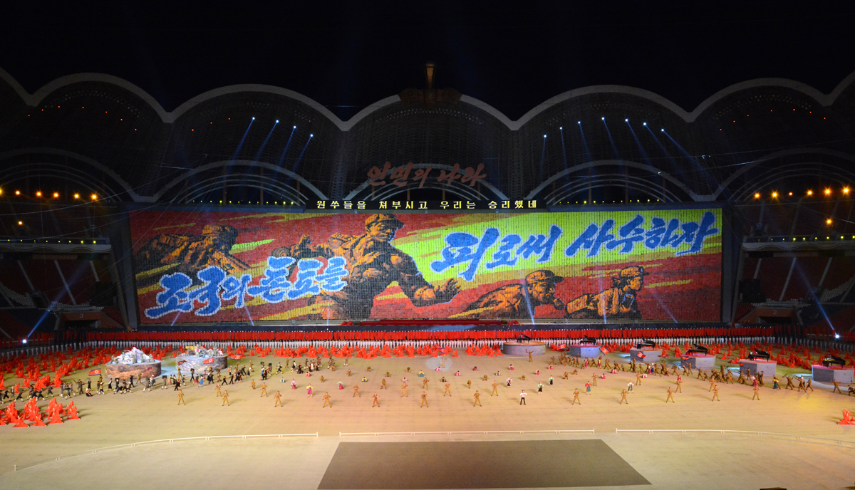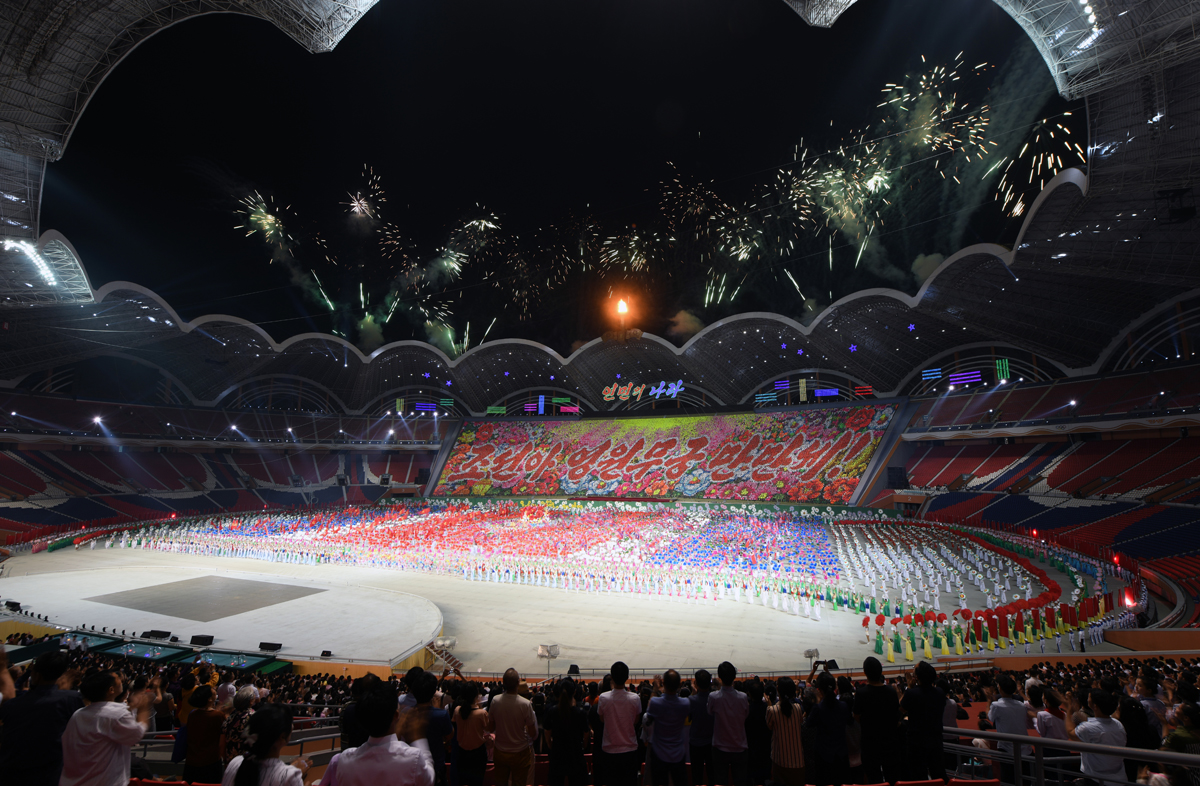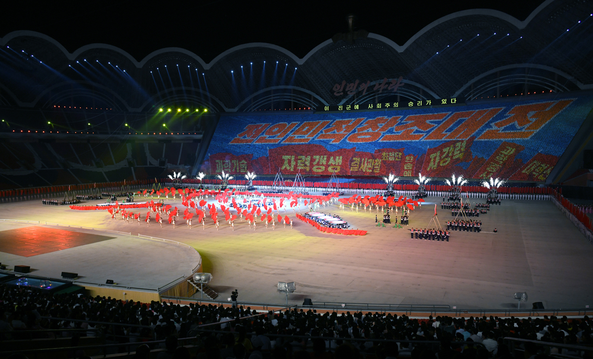 Velké masové tělocvičné a umělecké představení „Země lidu“ se koná na Stadionu 1. máje na malebném ostrově Rungna v Pchjongjangu v období od června do října.