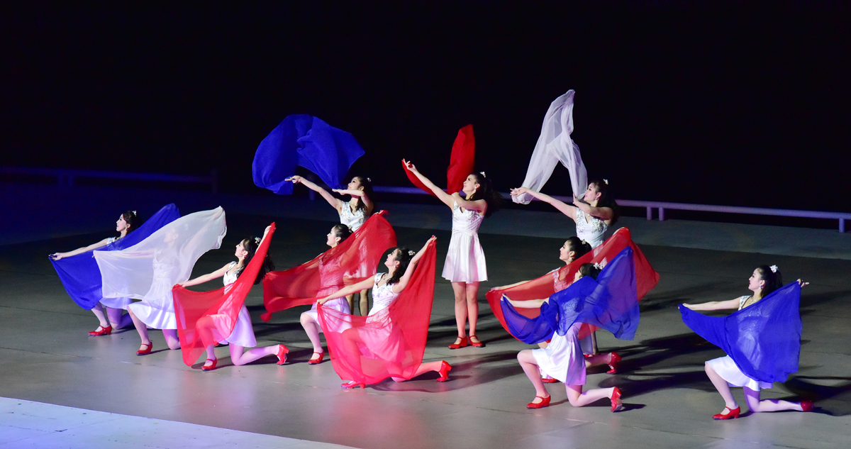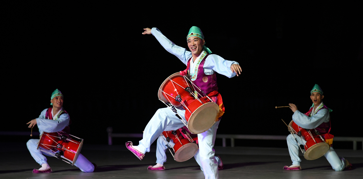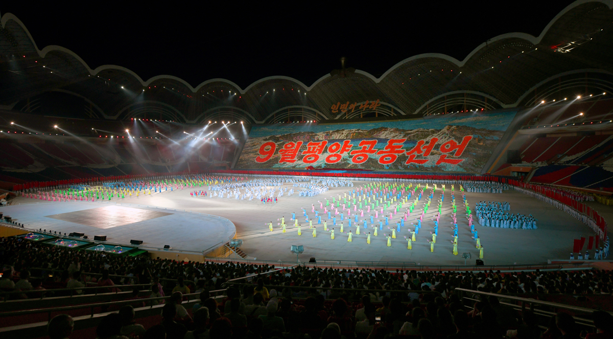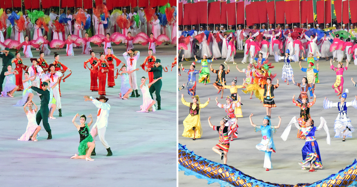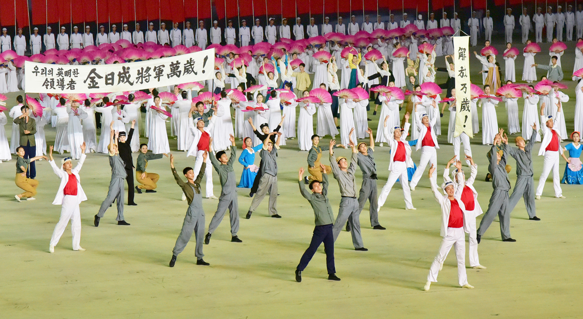 Velkoformátové scény provádí více než 17 tisíc studentů středních škol v Pchjongjangu. Více než tisíc hudebníků ve věku od 8 do 70 let hraje na jevišti na kajagum (korejský lidový strunný nástroj, pozn. překl.).