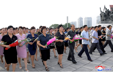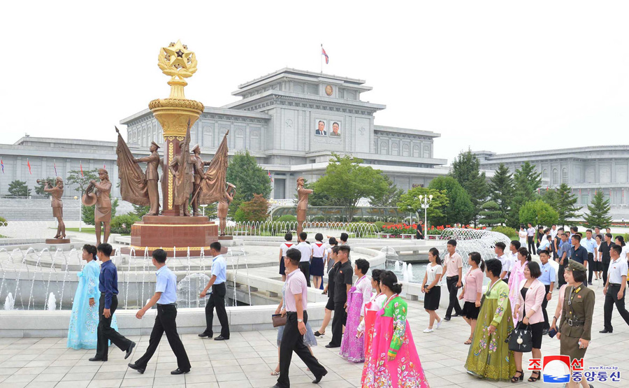 Masy navštívily Palác slunce Kumsusan, nejvyšší svatyni čučche, kde leží ve své životní podobě velký vůdce soudruh Kim Ir Sen a velký vůdce soudruh Kim Čong Il, a poklonily se portrétům slunečně usměvavých velkých vůdců. Pracující lid, studenti, žáci a vojáci navštívili bronzové sochy velkého vůdce a velkého generála v různých částech země a vzdali jim úctu.