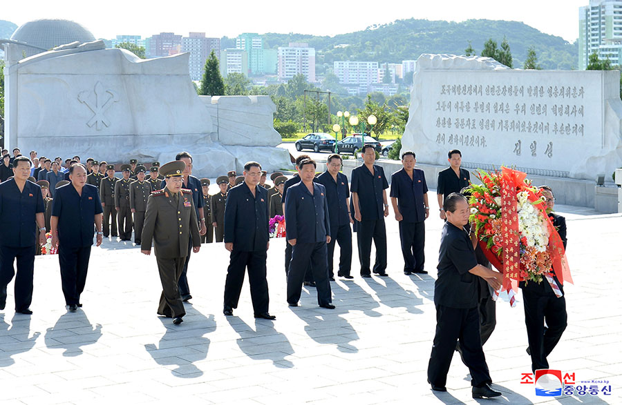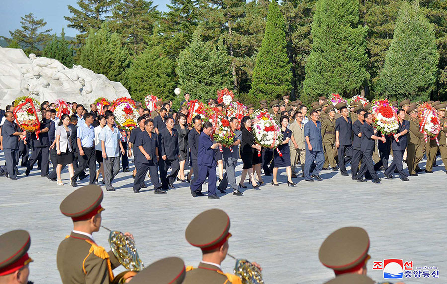 Kladení věnců se zúčastnili soudruzi Pak Kwang Ho, Pak Tche Song, Tche Hjong Čchol a další vedoucí kádry strany a vlády, členové Ústředního výboru strany, funkcionáři mocenských orgánů, vlády, organizací pracujících, výborů, ministerstev a ústředních institucí a funkcionáři institucí a podniků a pracující lid Pchjongjangu. Přítomen byl soudruh No Kwang Čchol a další členové orgánů ozbrojených sil.