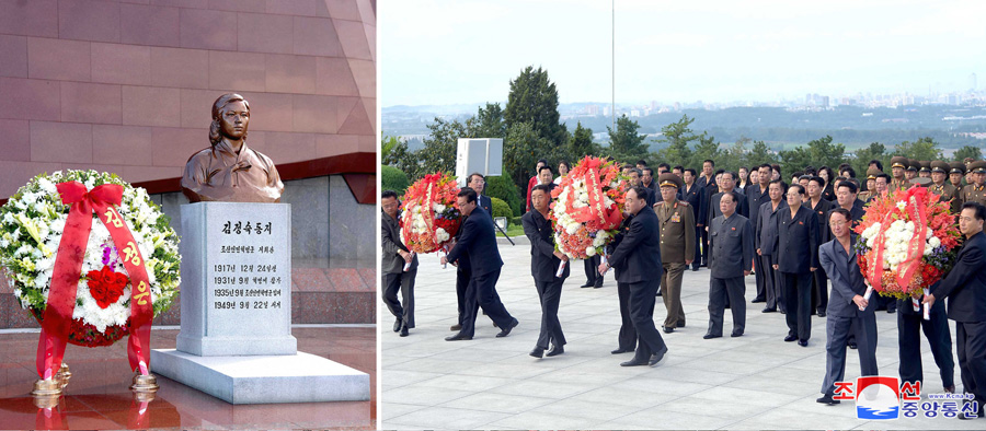 U příležitosti 70. výročí úmrtí hrdinky protijaponské války soudružky Kim Čong Suk byly 22. září položeny věnce před její bronzovou bustu na hřbitově revolučních mučedníků na hoře Tesong.