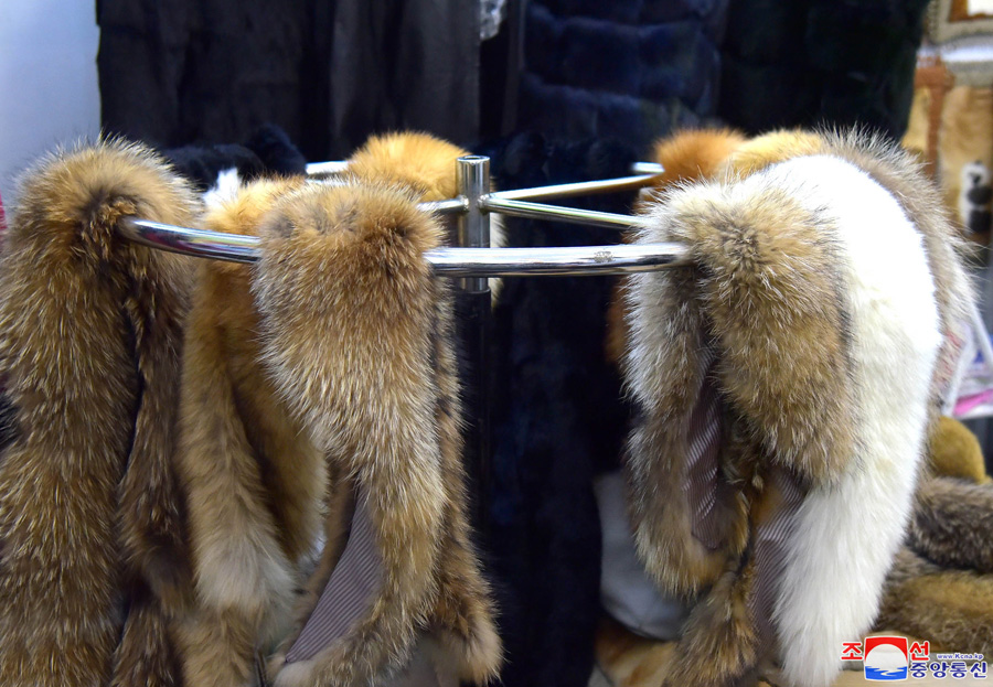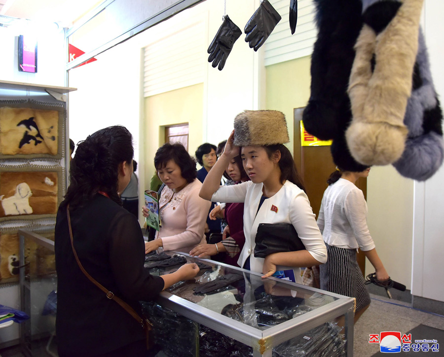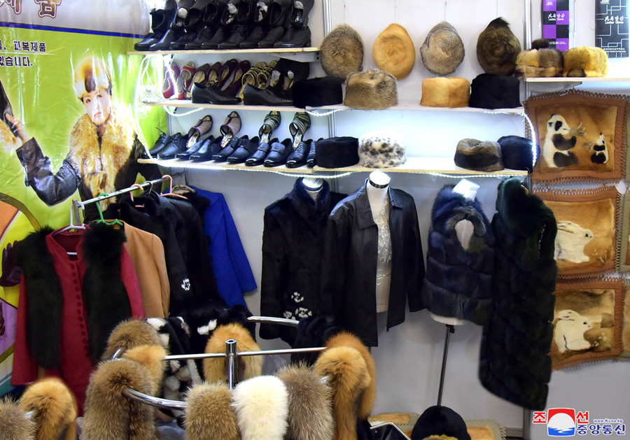 Pchjongjang, 26. září čučche 108 (2019) (KCNA) – Na 15. pchjongjangském mezinárodním obchodním veletrhu přitahují pozornost korejské výrobky z přírodní kůže a kožešin pro své pohodlí a tepelně izolační účinek, stejně jako díky různým tvarům a krásným barvám. Jsou mezi nimi rukavice, čepice, šály, vesty, tašky a kabáty pro muže i ženy. Zejména u žen jsou oblíbené kabáty a tašky různých tvarů z kozí kůže.