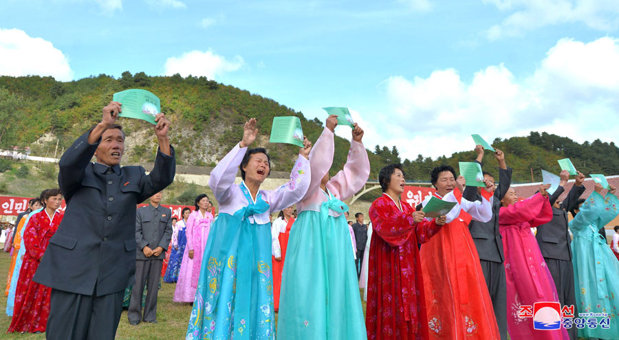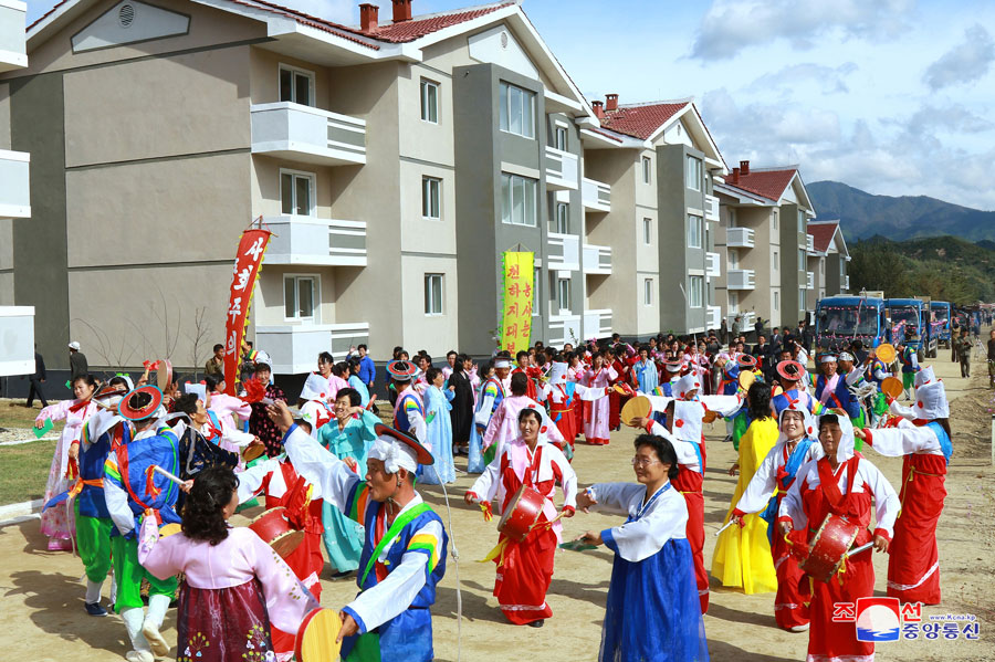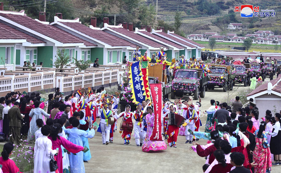 Zemědělští pracovníci a další vesničané se přestěhovali do nových domů v přestavěných vesnicích v Ondžong-ri, Samgje-ri, Unha-ri, Tchongdong-ri, Ilam-ri, Sangsin-ri, Sangsong-ri a Sagi-ri v okrese Jangdok a Sangso-ri v okrese Popdong a přijali blahopřání od funkcionářů a budovatelů.