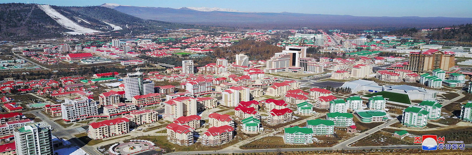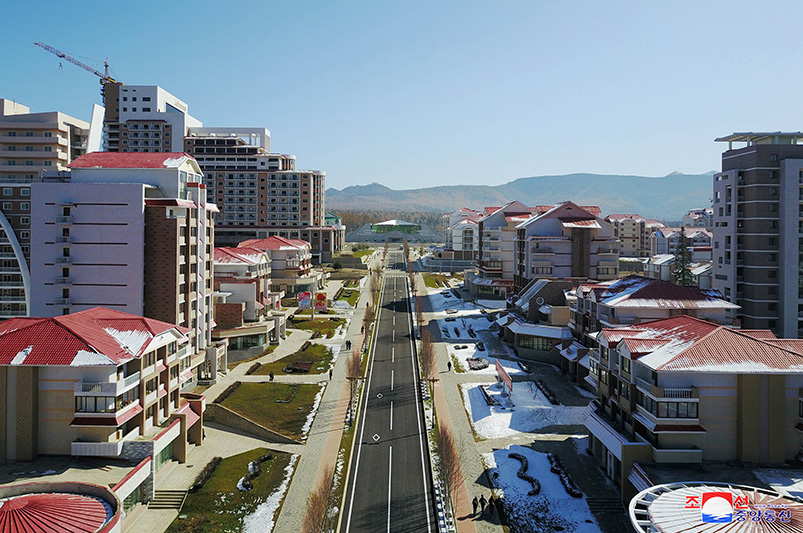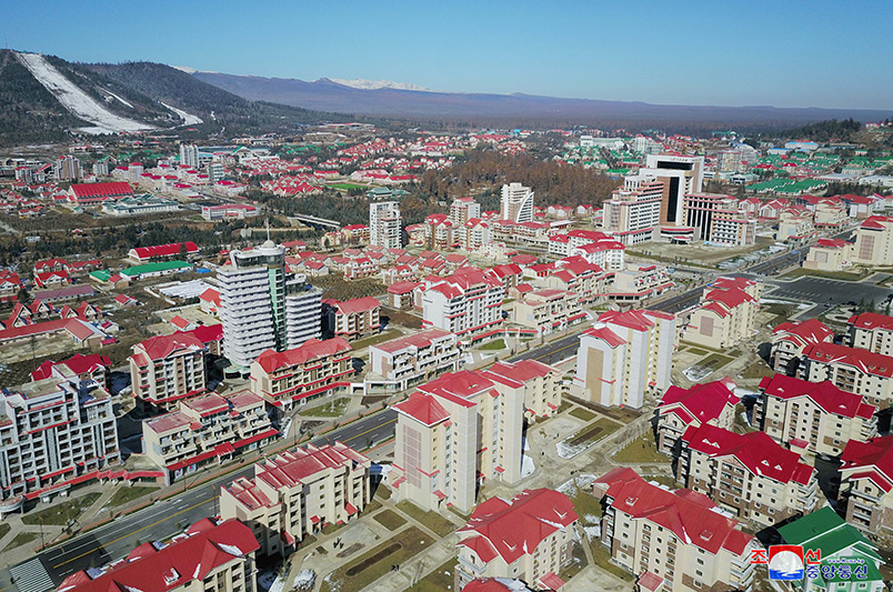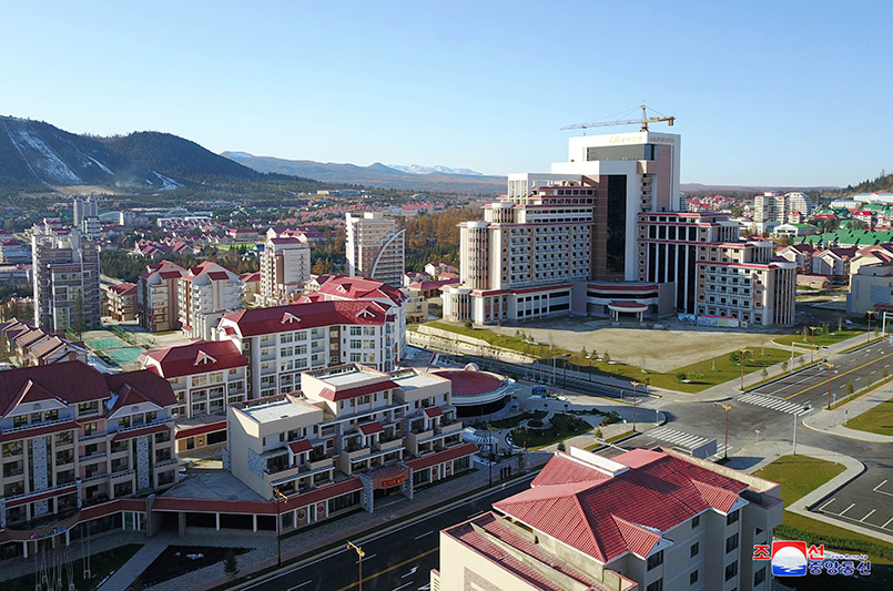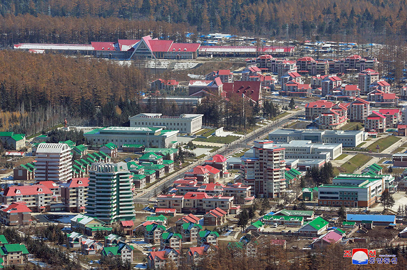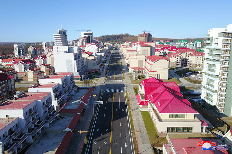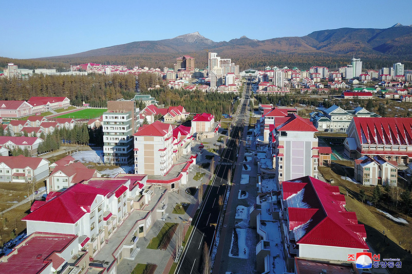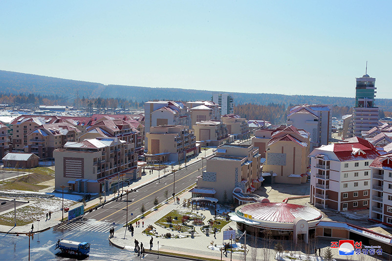 Vážený soudruh nejvyšší vůdce obdivoval panorama k nepoznání změněného okresního centra a vyslechl podrobnou zprávu o stavu výstavby druhé etapy. Řekl, že všechny budovy v okresním centru, připomínající celé město, byly postaveny tak, aby plně odrážely moderní krásu v dobré harmonii s hustými lesy hory Pektu (Pektusan).