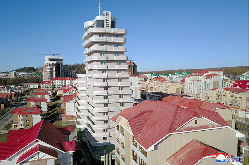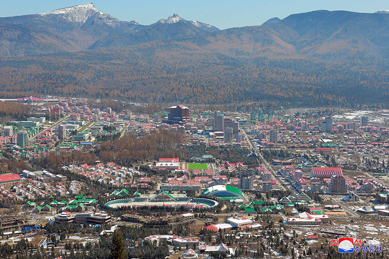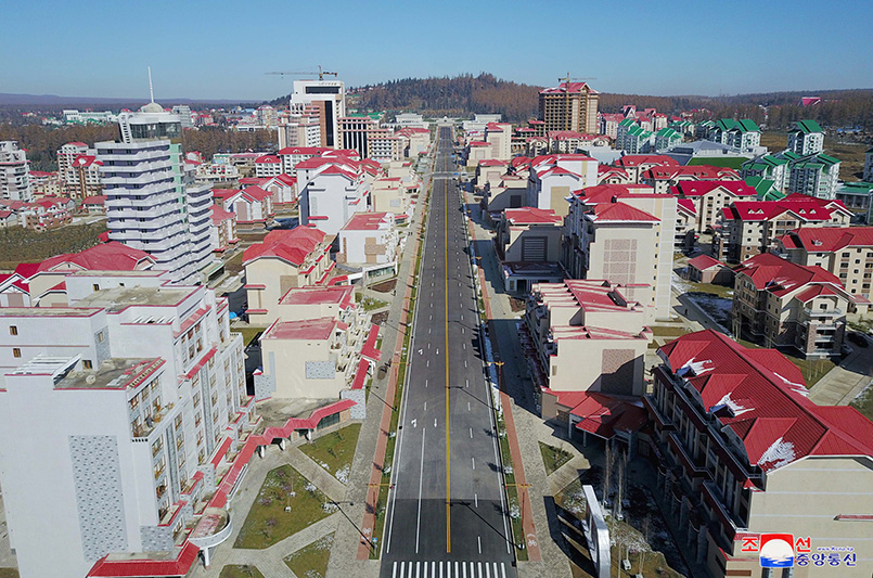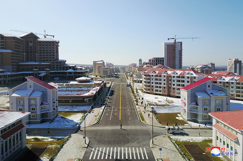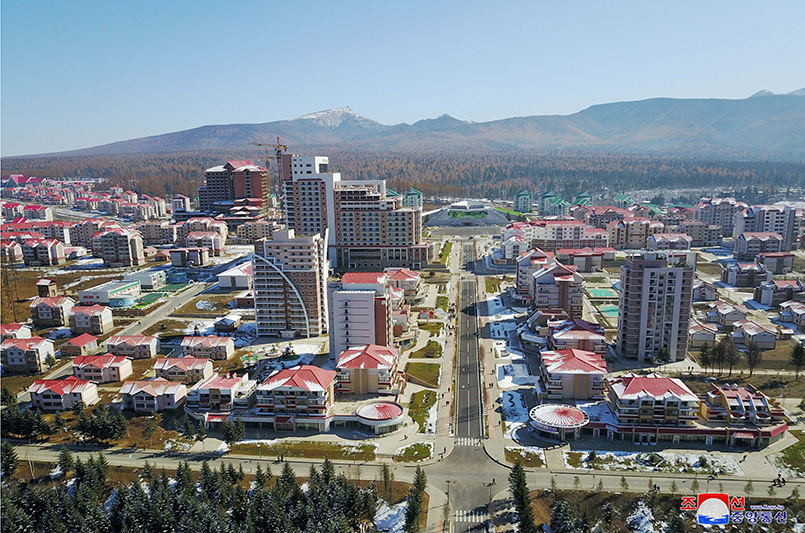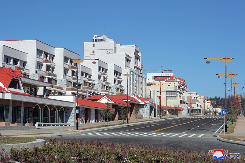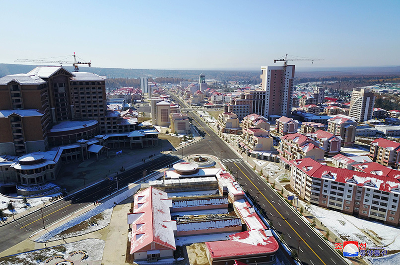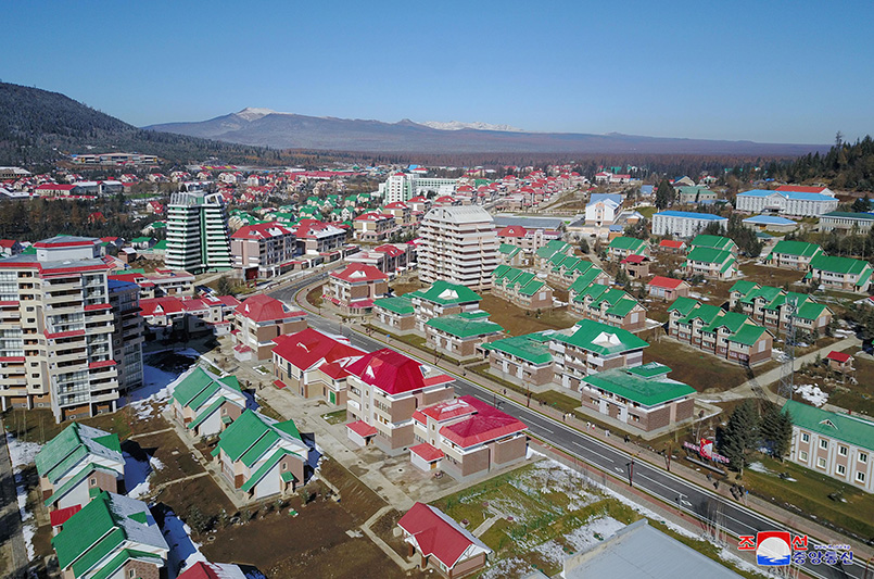 Vážený soudruh nejvyšší vůdce obdivoval panorama k nepoznání změněného okresního centra a vyslechl podrobnou zprávu o stavu výstavby druhé etapy. Řekl, že všechny budovy v okresním centru, připomínající celé město, byly postaveny tak, aby plně odrážely moderní krásu v dobré harmonii s hustými lesy hory Pektu (Pektusan).