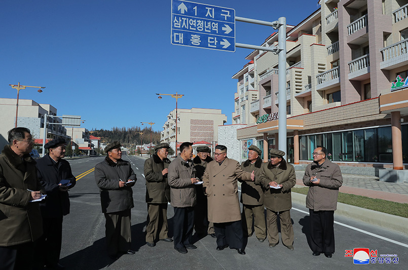 Pchjongjang, 16. října čučche 108 (2019) (KCNA) – Předseda Korejské strany práce, předseda Komise pro státní záležitosti Korejské lidově demokratické republiky a vrchní velitel ozbrojených sil KLDR, nejvyšší vůdce naší strany, státu a ozbrojených sil soudruh Kim Čong Un vedl na místě staveniště okresu Samdžijon, kde se úspěšně završuje druhá etapa projektu.