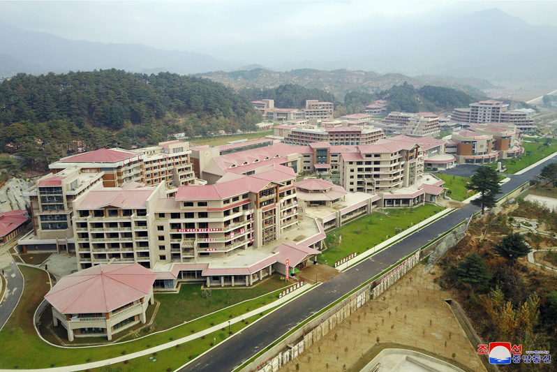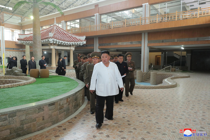 Vážený soudruh nejvyšší vůdce vyjádřil velkou spokojenost s tím, že ačkoli uplynulo jen o málo více než 50 dní od jeho srpnové návštěvy, je výstavba turistické a lázeňské zóny okresu Jangdok úspěšně dokončena.
