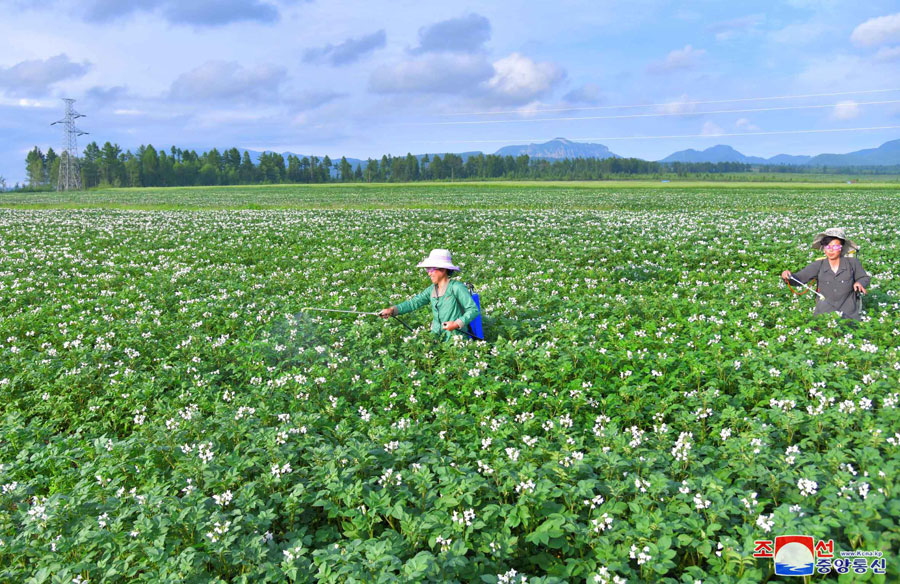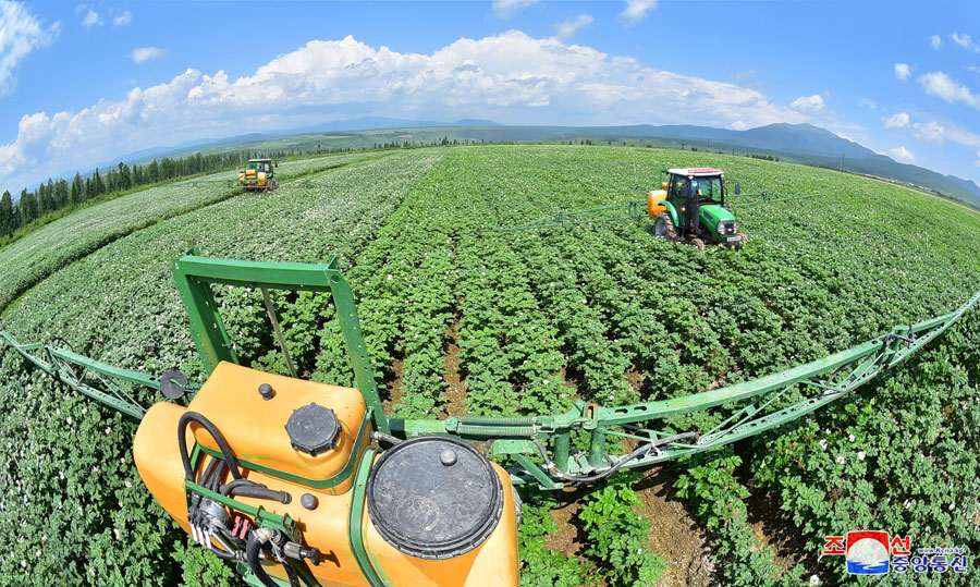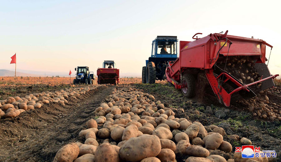 Pracující farmy Čunghung v okrese Samdžijon provincie Rjanggang v srdečné odezvě na místní pokyny váženého nejvyššího vůdce soudruha Kim Čong Una dosáhli nejvyšší roční produkce brambor zavedením vědecky založené metody hospodaření a uskutečněním komplexní mechanizace.