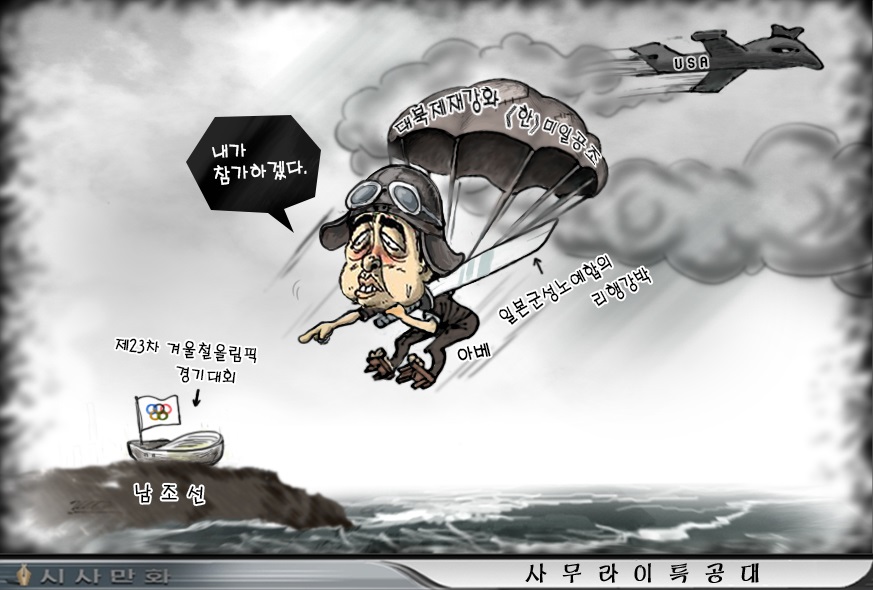 Abe je také mimořádným ignorantem, který sní o přeměně Japonska ve vojenskou mocnost, ačkoli nedokáže rozlišit raketomety od raket, a zdá se být slabomyslným, když tupohlavě pronáší pouze hrubá a zlobná slova jako „provokace“, „pobouření“, „porušení“, „únos“ a „tlak“.