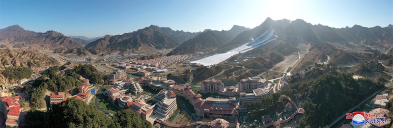 Vážený soudruh nejvyšší vůdce přišel s iniciativou vybudovat rekreační oblast, kde si návštěvníci mohou užívat koupání v horkých pramenech, lyžování a jízdu na koni, na což nikdo dříve nepomyslel, a energicky vedl celý stavební proces, aby byl postaven na nejvyšší úroveň, uvedl řečník.