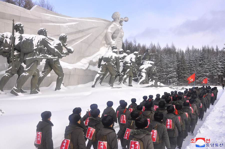 Pochod mládeže z celé země 16. prosince navštívil Pektusanský tajný tábor, rodiště velkého vůdce soudruha Kim Čong Ila, během studijní cesty po místech revoluční a bojové slávy v oblasti Pektusanu.