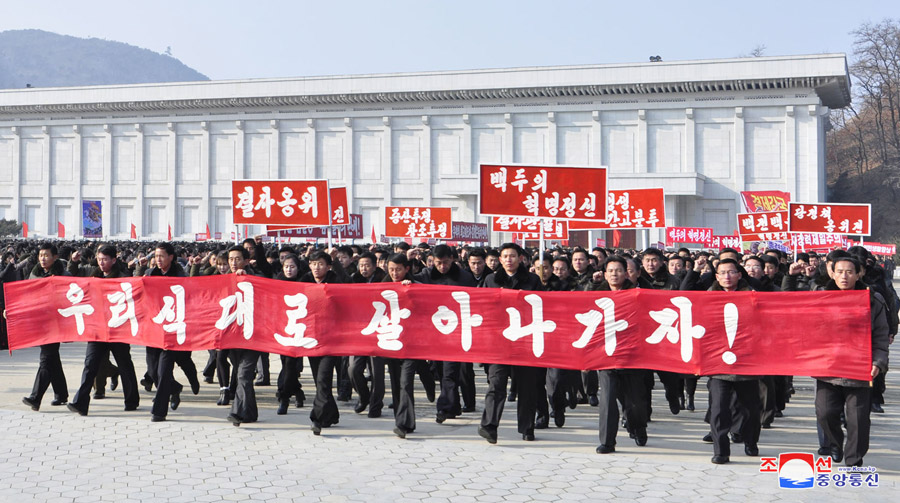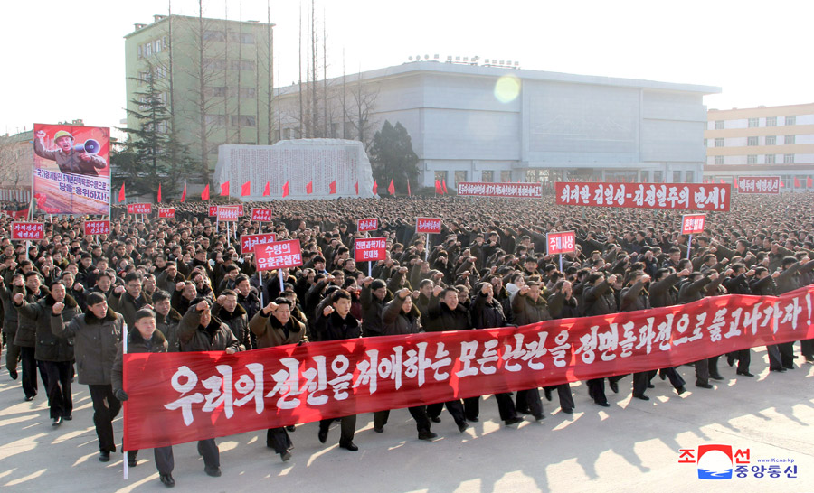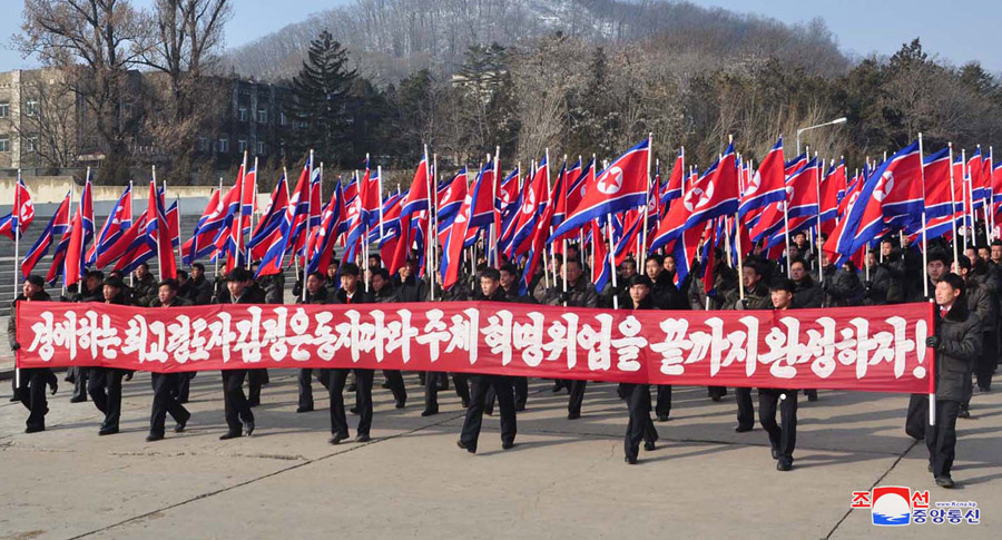 Pchjongjang, 9. ledna čučche 109 (2020) (KCNA) – 9. ledna se v provinciích Jižní Pchjongan, Jižní Hwanghe, Severní Hwanghe a Čagang konala shromáždění k důslednému splnění programových úkolů stanovených na 5. plenárním zasedání 7. Ústředního výboru Korejské strany práce. Zúčastnili se jich funkcionáři místních stranických a mocenských orgánů, organizací pracujícího lidu, podniků, družstev a vysokých škol a pracující lid a studenti.