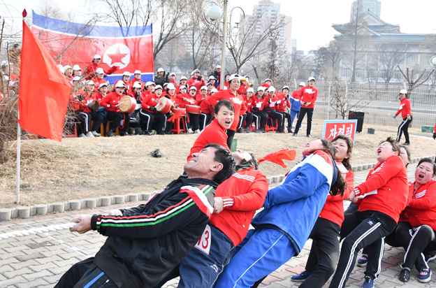 Továrny, podniky a vzdělávací instituce v Pchjongjangu pořádaly různé sportovní hry a zvyšovaly tak náladu sportovního dne.