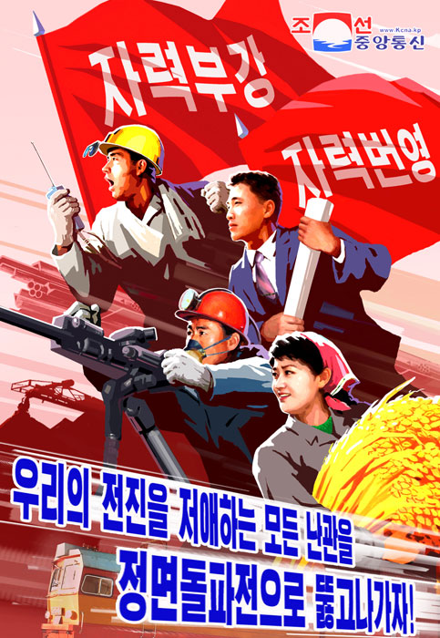 Byly vytvořeny plakáty vyzývající k frontálnímu průlomu různých nahromaděných obtíží s revolučním duchem soběstačnosti ve všech oblastech národního hospodářství, včetně metalurgického průmyslu a energetiky. Jeden z plakátů ukazuje, že otevření průlomu na vědecké frontě povede k vítězství ve všech odvětvích socialistické výstavby. Další odráží myšlenku proměnit Koreu v zemi vzdělání a zemi s nadanými kádry, rozvíjet vzdělávání a zdravotní péči a zdůraznit výhody socialistického systému.