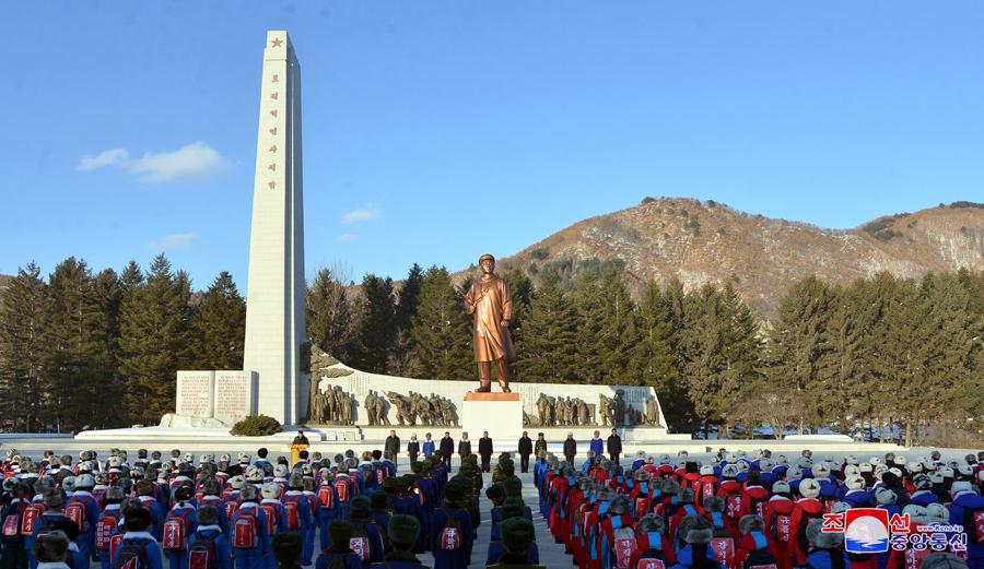 Pchopchjong, 3. února čučche 109 (2020) (KCNA) – Žáci z celé země, kteří se zúčastnili pochodu 1000 ri (250 kilometrů) za obnovu vlasti, zahájeného 22. ledna v Mangjongde, dorazili 3. února do Pchopchjongu, kde velký vůdce generalissimus Kim Ir Sen překročil řeku Amnok.